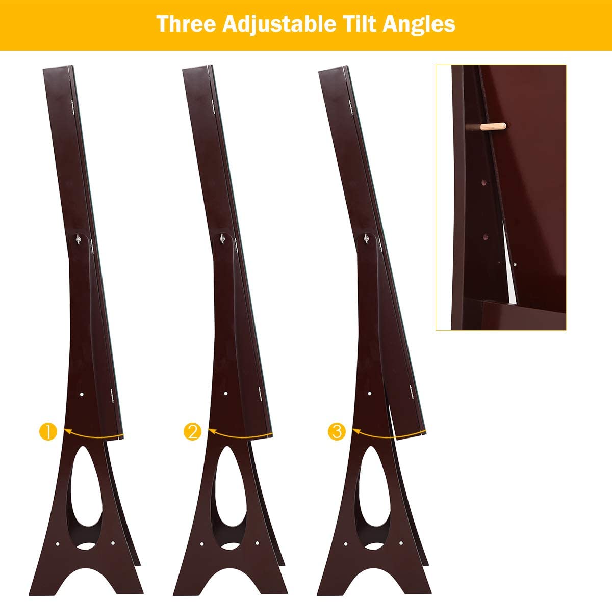 - 【3 Tilt Positions】We designed a bar on the back of this floor-standing mirror jewelry cabinet to ensure that the cabinet rotates within a certain angle, effectively preventing the jewelry from falling due to excessive rotation. This cabinet can be adjusted in 3 tilt positions.