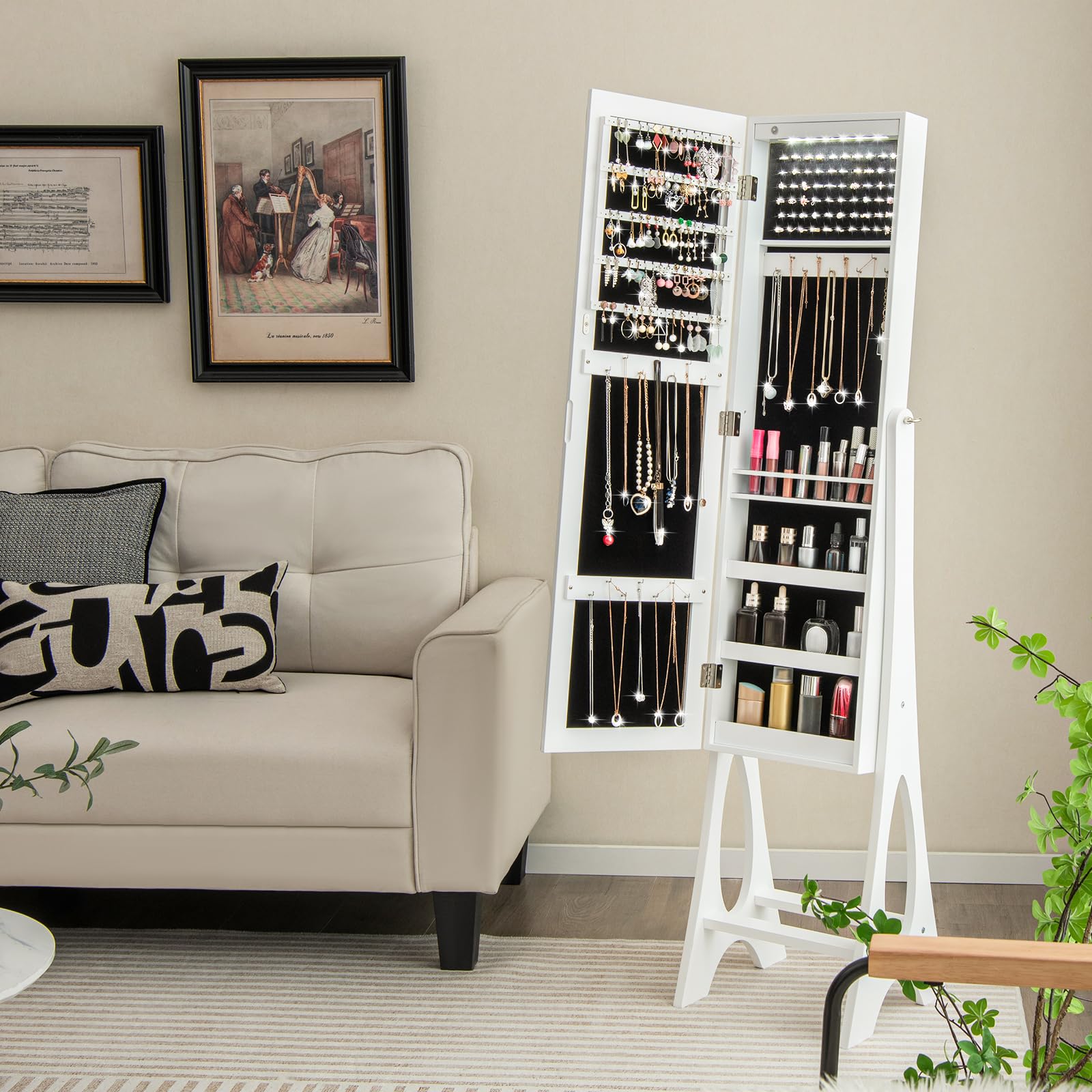 - 【Frameless Full-Length Mirror】The jewelry organizer has a full-length mirror. It is perfect in width and height to show your body beautifully. The frameless mirror is super stylish, clean, and simple, perfect for either a luxurious or simple home style. The whole mirror jewelry cabinet is delicate and functional.