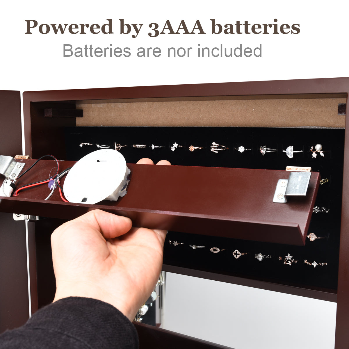 - Protective Velvet Liner: We use high-quality boards to ensure solidness and durability. The surface powder coating is moisture and corrosion-resistant. The protective velvet lining in the jewelry cabinet protects your jewelry from scratches and being scuffed and it is also oxidation-resisting.