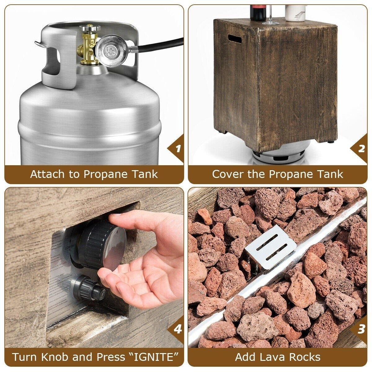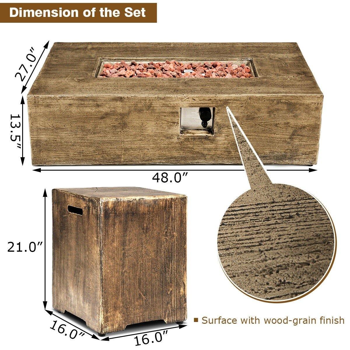 Dimension of propane fire pit table: 48" x 27" x 13.5"(L x W x H)