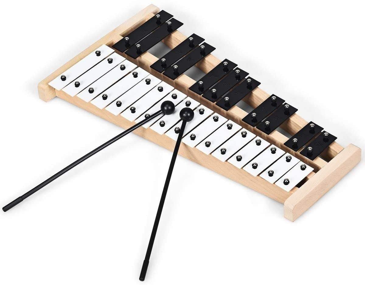 - High Quality Material & Delicate Craftsmanship: Selection of aluminum plates to make 27 notes of the percussion glockenspiel, which is durable. The wooden base is natural and sturdy. Besides, after delicate treatment, the edge is smooth, which prevents people from being scratched.