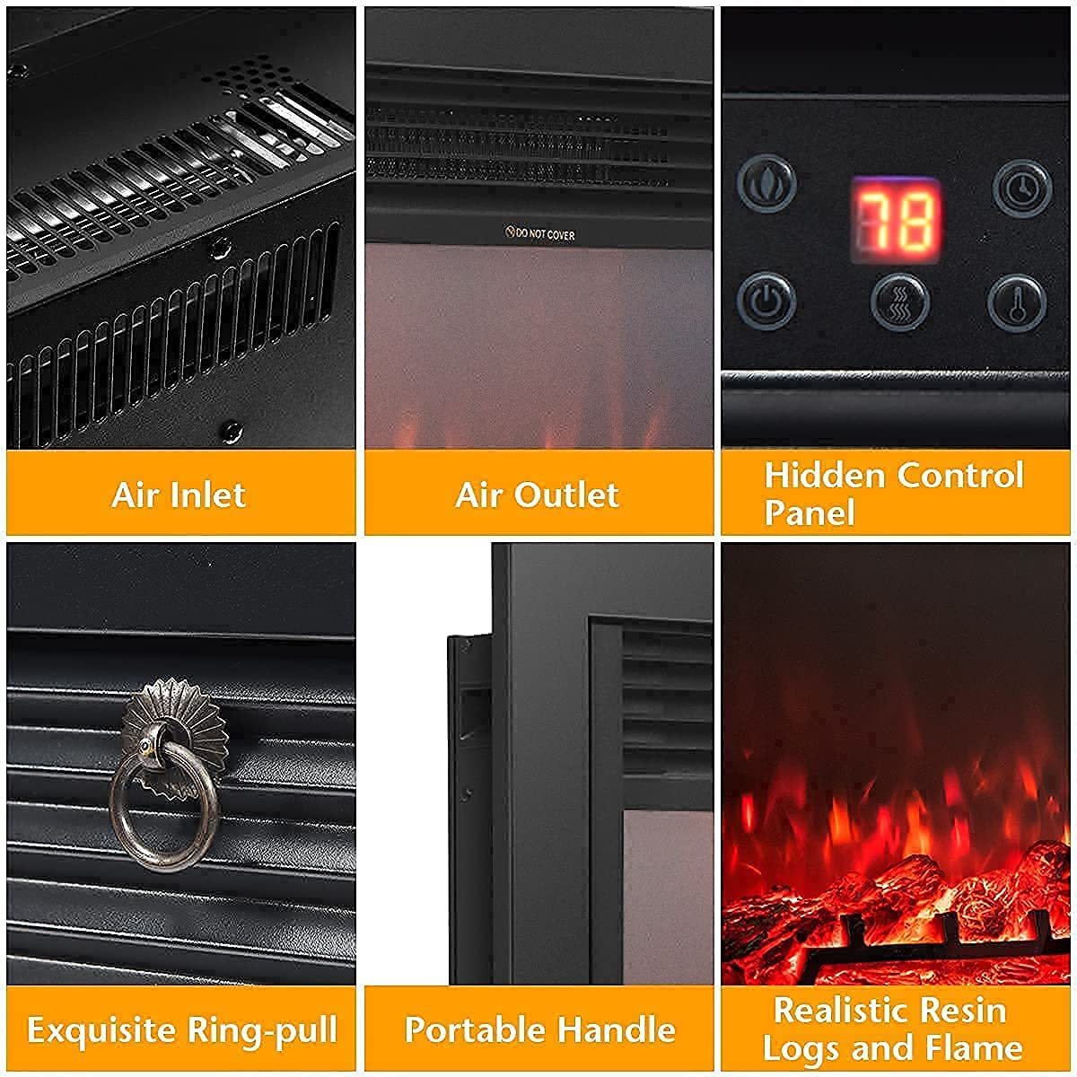Our electric fireplace creates a cozy environment by simulating the actual flame effect. A high-intensity LED light reflects the wood, and there are three flame colors to select from. Furthermore, our flame brightness has 5 levels to accommodate the requirements of various situations. Our upgraded electric fireplace now has a thermostat and timer feature, allowing you to automatically change the temperature from 62 degrees Fahrenheit to 82 degrees Fahrenheit and the operating duration from 0 to 8 hours. Allow for the usage of a touch screen and remote control for ease of operation. Maximum BTU: 5,118 Strong warm capability to fulfill the need for a 400-square-foot space. higher front vents that are more favorable to heat transmission and therefore effectively warm your space Continuous breeze will keep you toasty at all times.