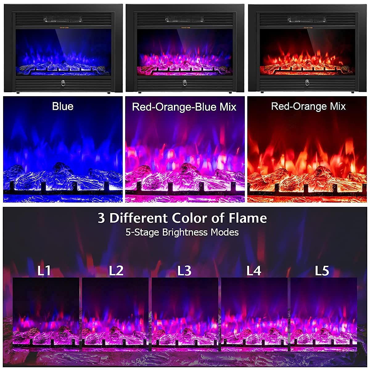 - Realistic Flame Effect: Through tempered glass, you can watch the life-like flame and log in the fireplace. Coming with 3 flame color options―orange-red, blue, and orange-blue-red mix, this electric fireplace can provide a cozy atmosphere with vivid flames. Also, there are 5 modes of brightness of flames for you to choose. Plus, the flame decoration can be used separately without heating.