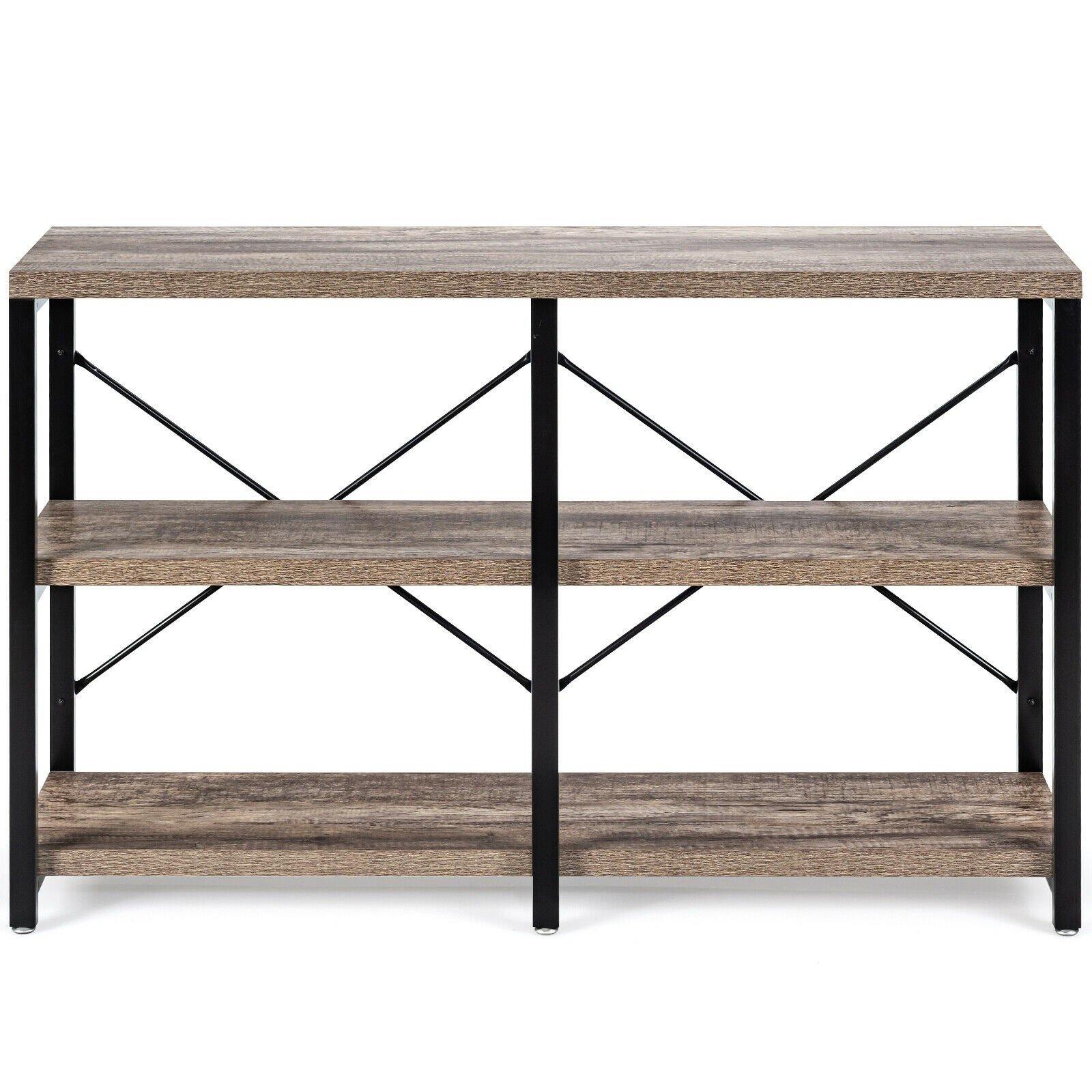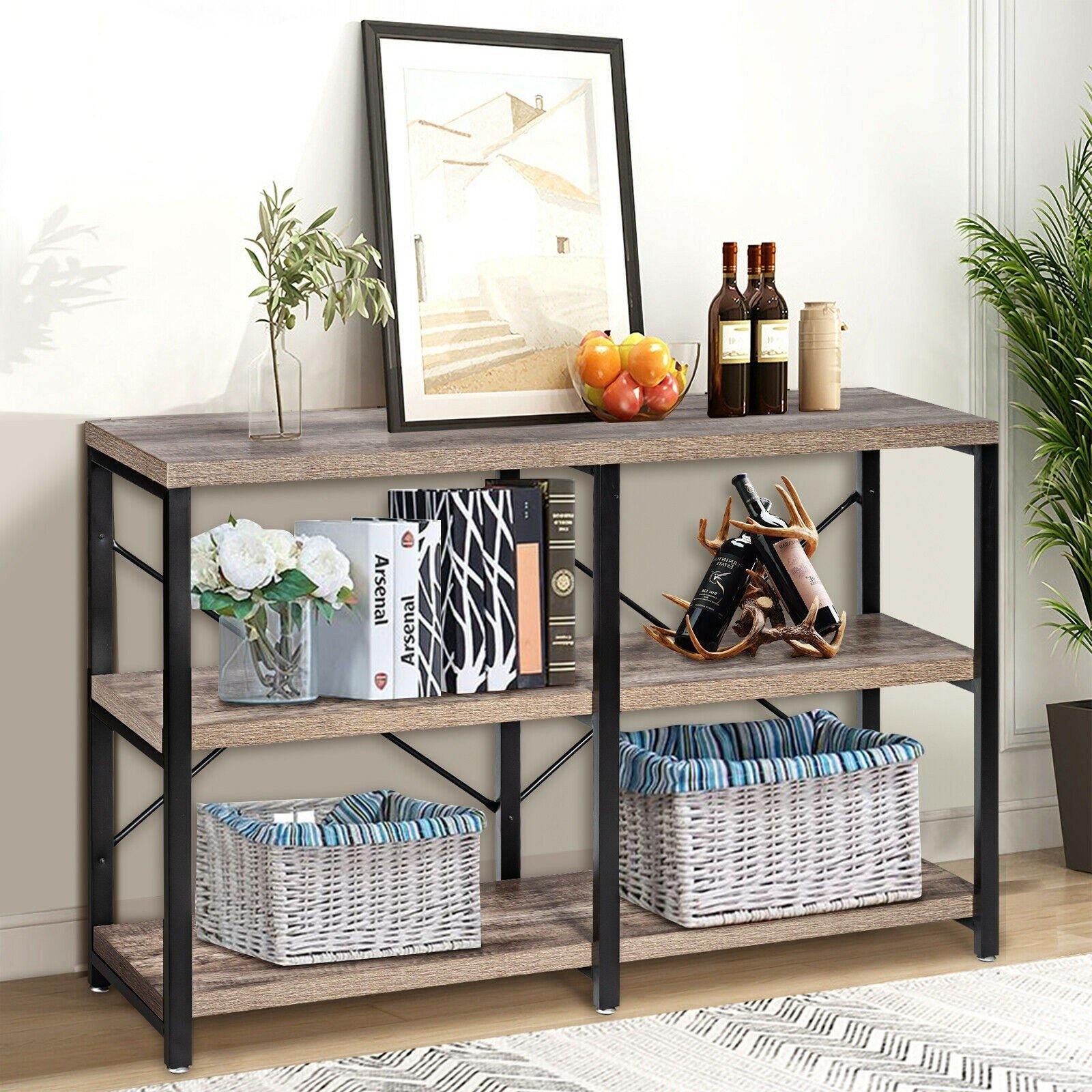 Are you looking for the furniture owning both fashion and practicality? Our 3-tier console sofa table is the best choice for you! This elegant console table can add glamour to your home while providing more storage space! This sofa table is made of durable honeycomb plates and sturdy iron pipes, which ensures a long service life. The anti-tip kit improves safety. Besides, double X-frame back braces ensure overall stability so you can store items with confidence. The open shelf provides adequate storage space for books, toys, crafts, etc. The smooth surface is easy to clean, and you can wipe it effortlessly with a damp. Moreover, this multifunctional sofa table is suitable for your kitchen, living room, entryway, study, office and so on.