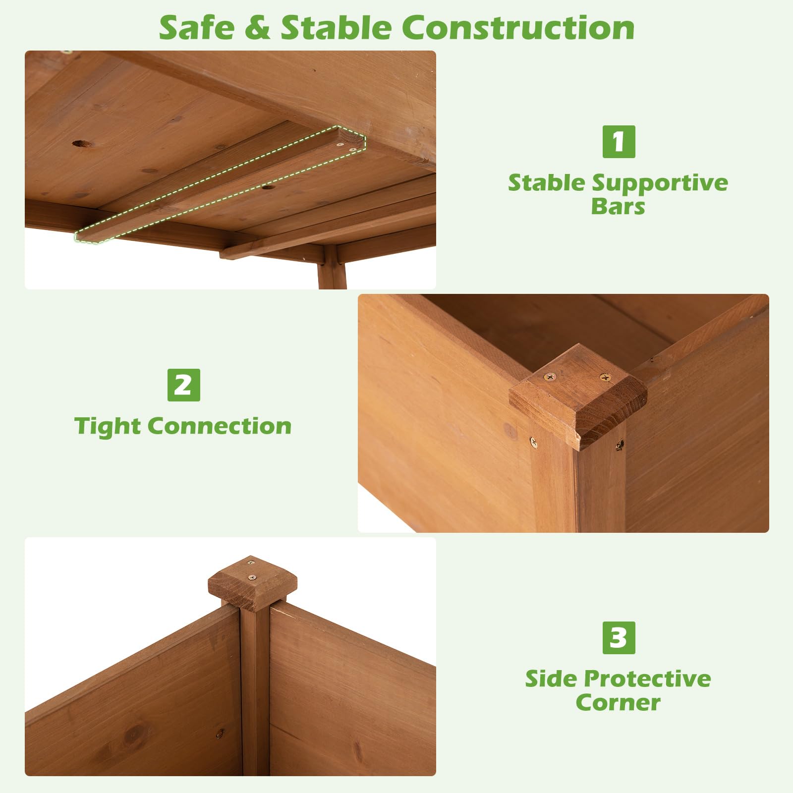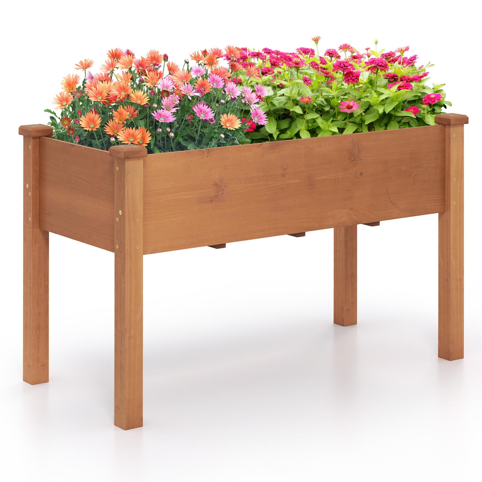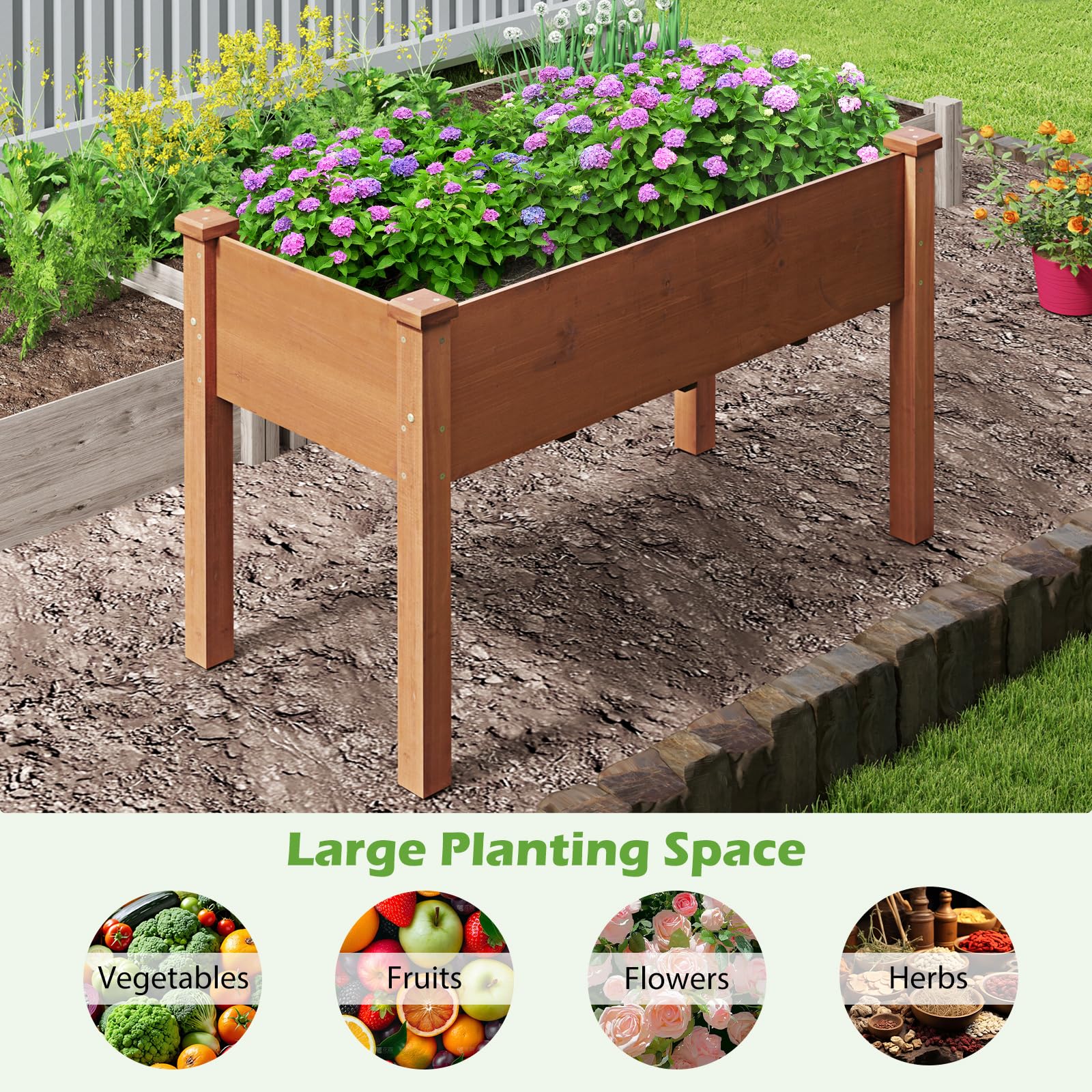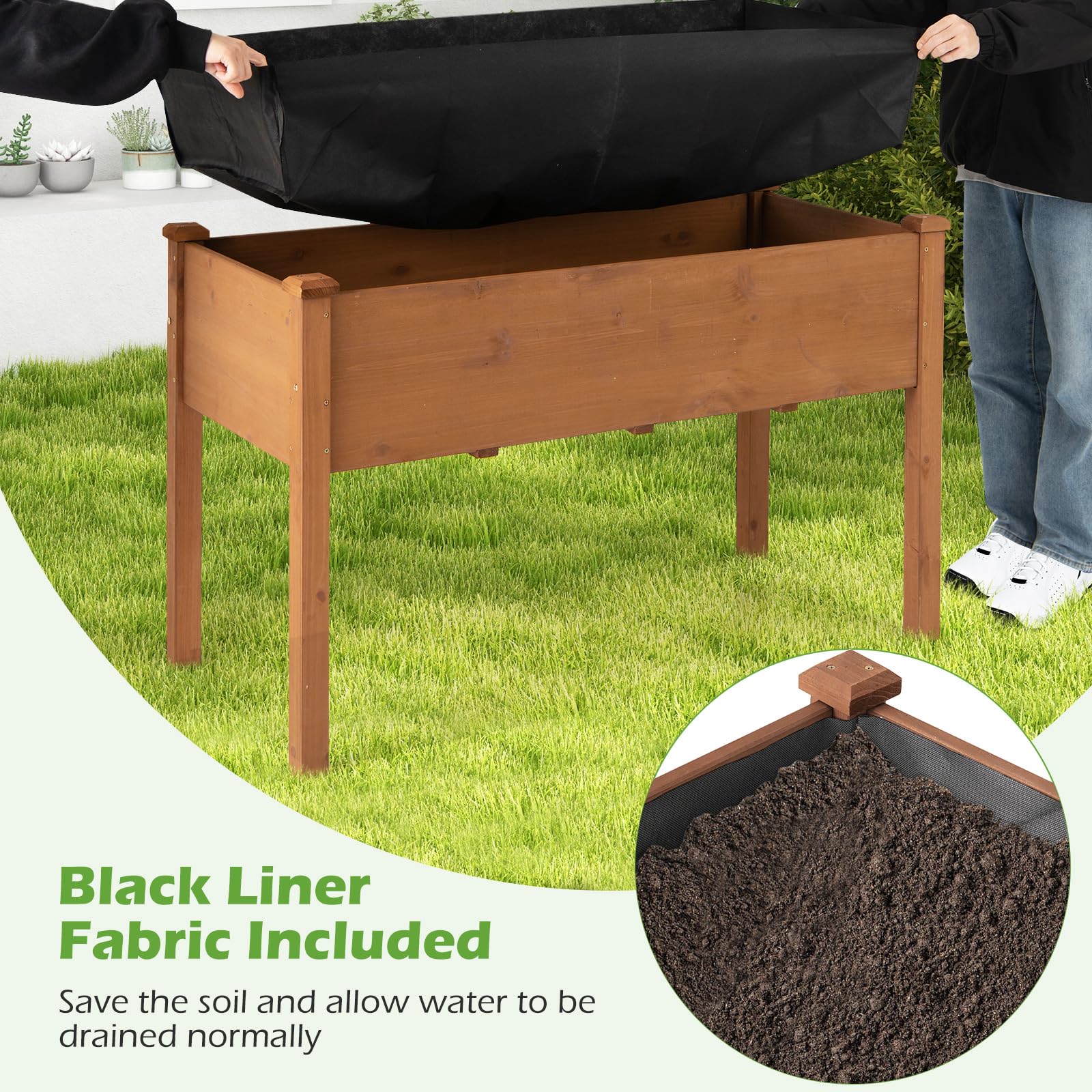 Enhance your gardening experience with this raised garden bed. Featuring a large capacity, it accommodates various plants while ensuring good drainage with internal holes. The raised height of 30 inches eliminates the need for bending, reducing strain on your back and protecting plants from wildlife. With a black garden liner fabric for soil retention and proper drainage, it suits flowers, veggies, and herbs. The stable wood frame and reinforced crossbar offer durability, complemented by sturdy legs for a solid foundation. Perfect for enthusiasts and professionals alike, it offers a practical solution to cultivating a thriving, beautiful garden!