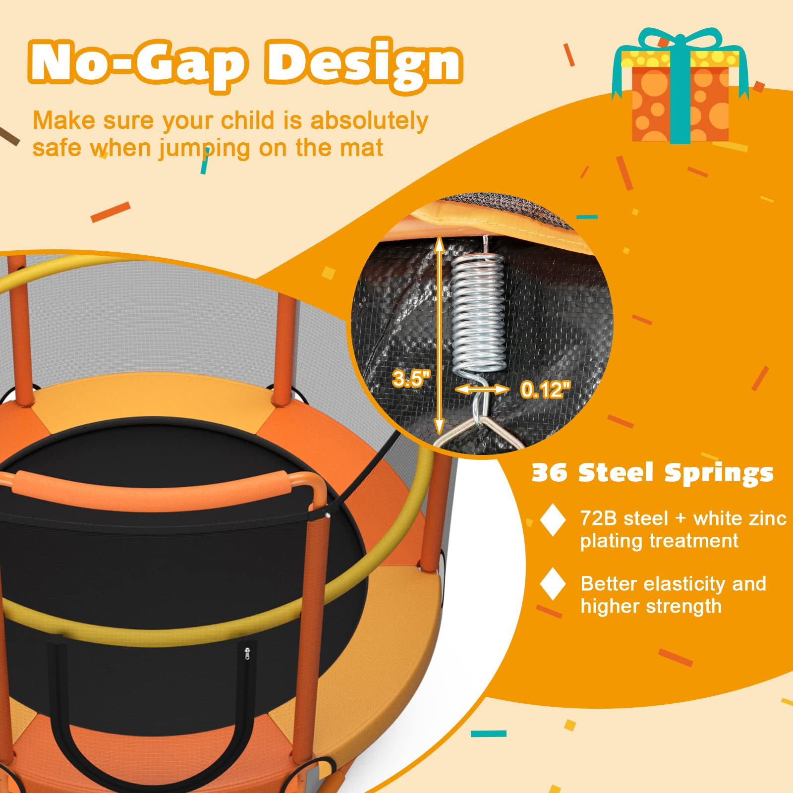 - Ideal Gift for Indoor & Outdoor Use: This 60" trampoline is perfect as a birthday, Christmas, or other holiday gift for 3-7-year-old kids. The kid's trampoline not only helps little ones to improve body coordination and balance ability but also effectively reduces their screen time. It is suitable for both indoor and outdoor use, such as a game room, living room, backyard, playground, and so on.