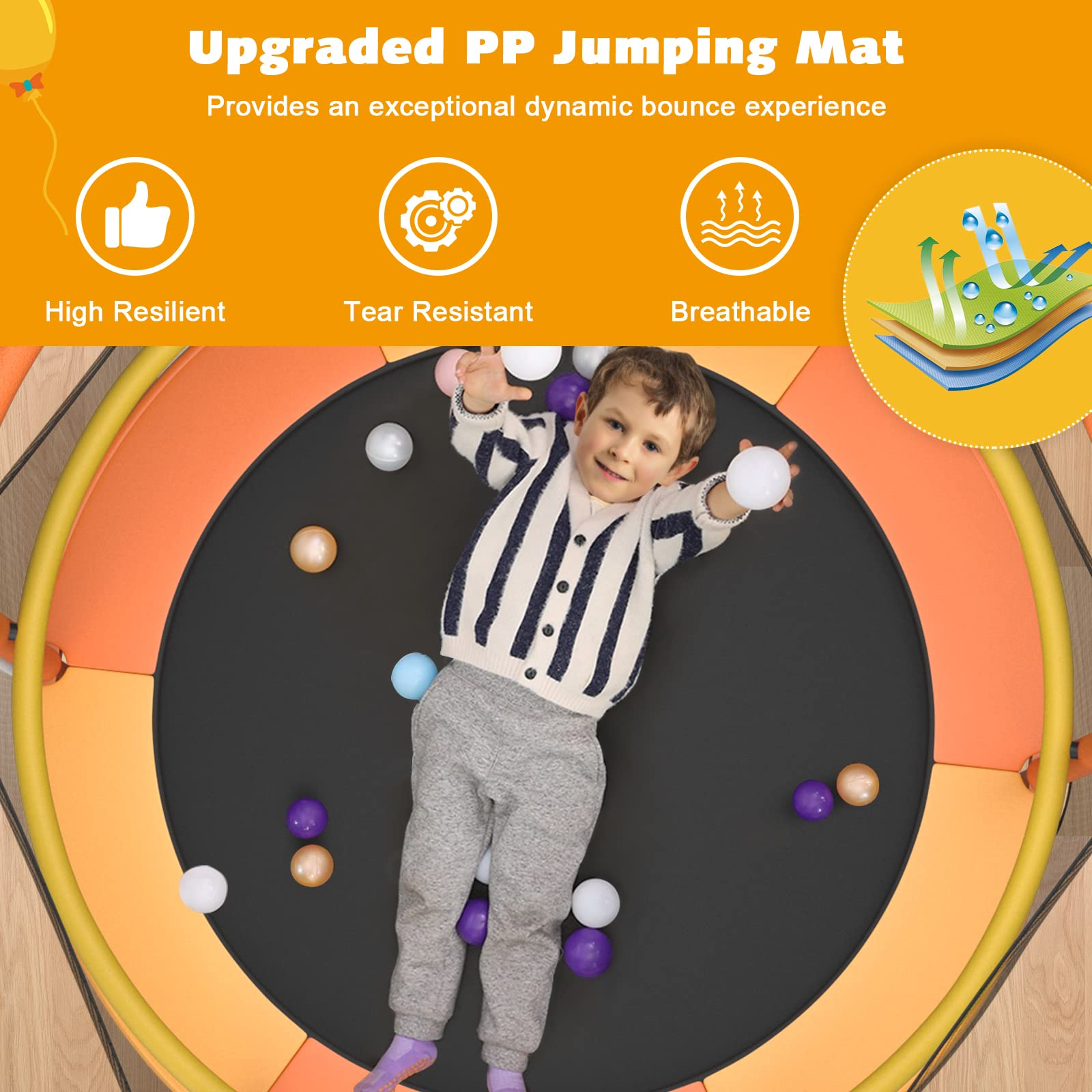 - Premium Materials for Better Bounce: To provide an exceptional jumping experience for every child, the Giantex trampoline is built with a PP jump mat, which is highly resilient, breathable, impact-proof, and tear-resistant. Exquisite sewing techniques enable it to withstand intense and heavy bounces. 36 galvanized steel springs have better elasticity, higher strength, and stronger anti-rust performance.