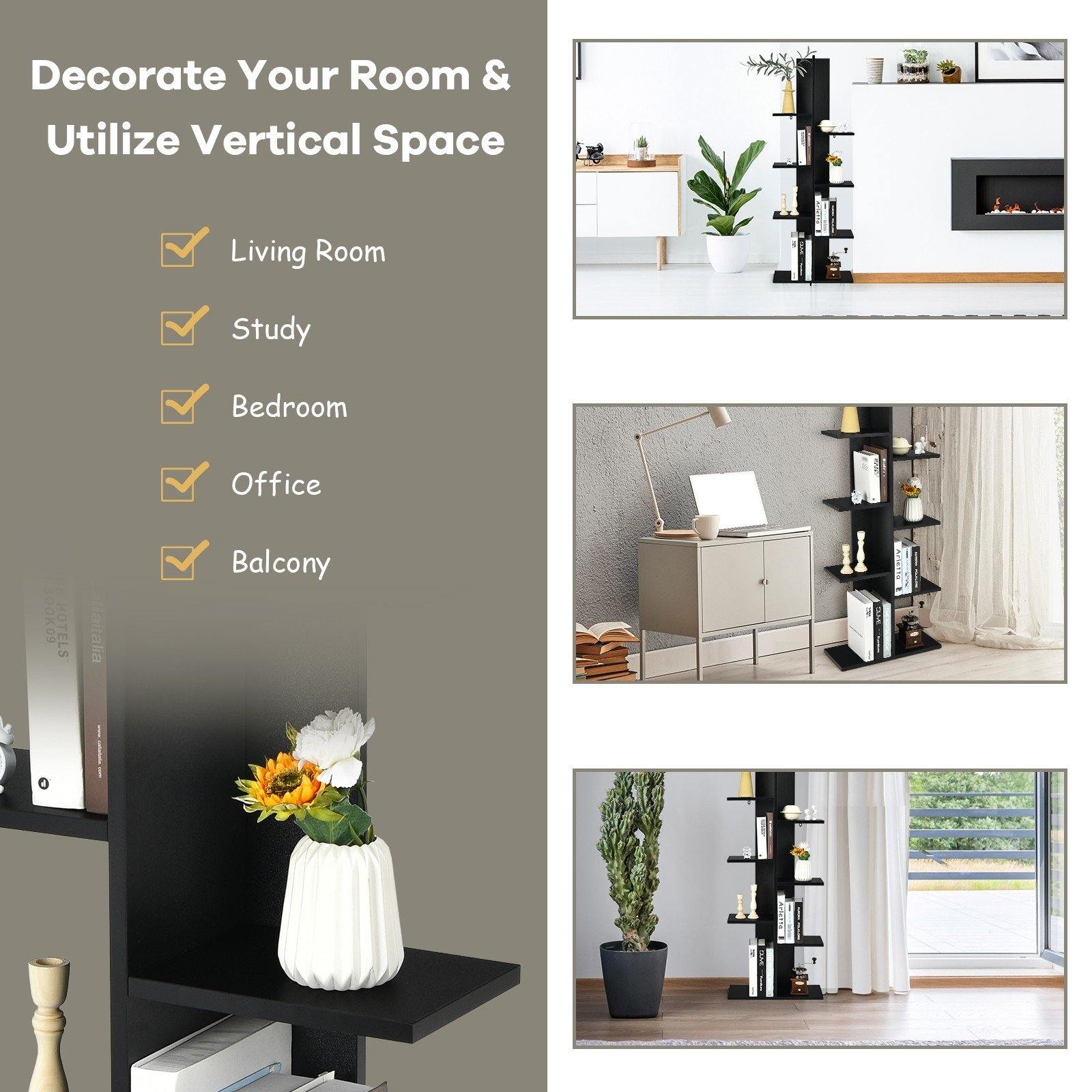 • ? Versatile Use: Combining sleek appearance and space-saving design, this 8-tier bookshelf will be a perfect addition to your home. Thanks to the multipurpose design, this modern bookcase can not only be used to place books in the study room, but also serve as a storage organizer in the bathroom, living room, office, etc.