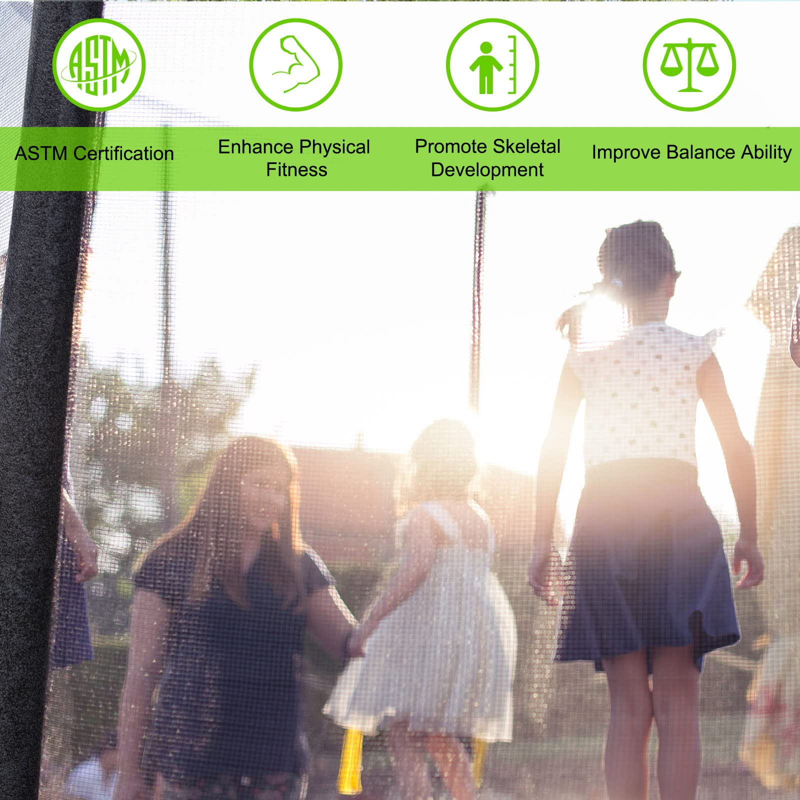 - ASTM Approved & Complete Safe Protections: Gaintex trampoline meets the ASTM standard, which adds more assurance in quality and relieves parents' worries. Moreover, the curved poles leave enough safe space between the net and poles to avoid kids getting hurt when fall. The soft safety pad is also included for sealing dangerous gaps.