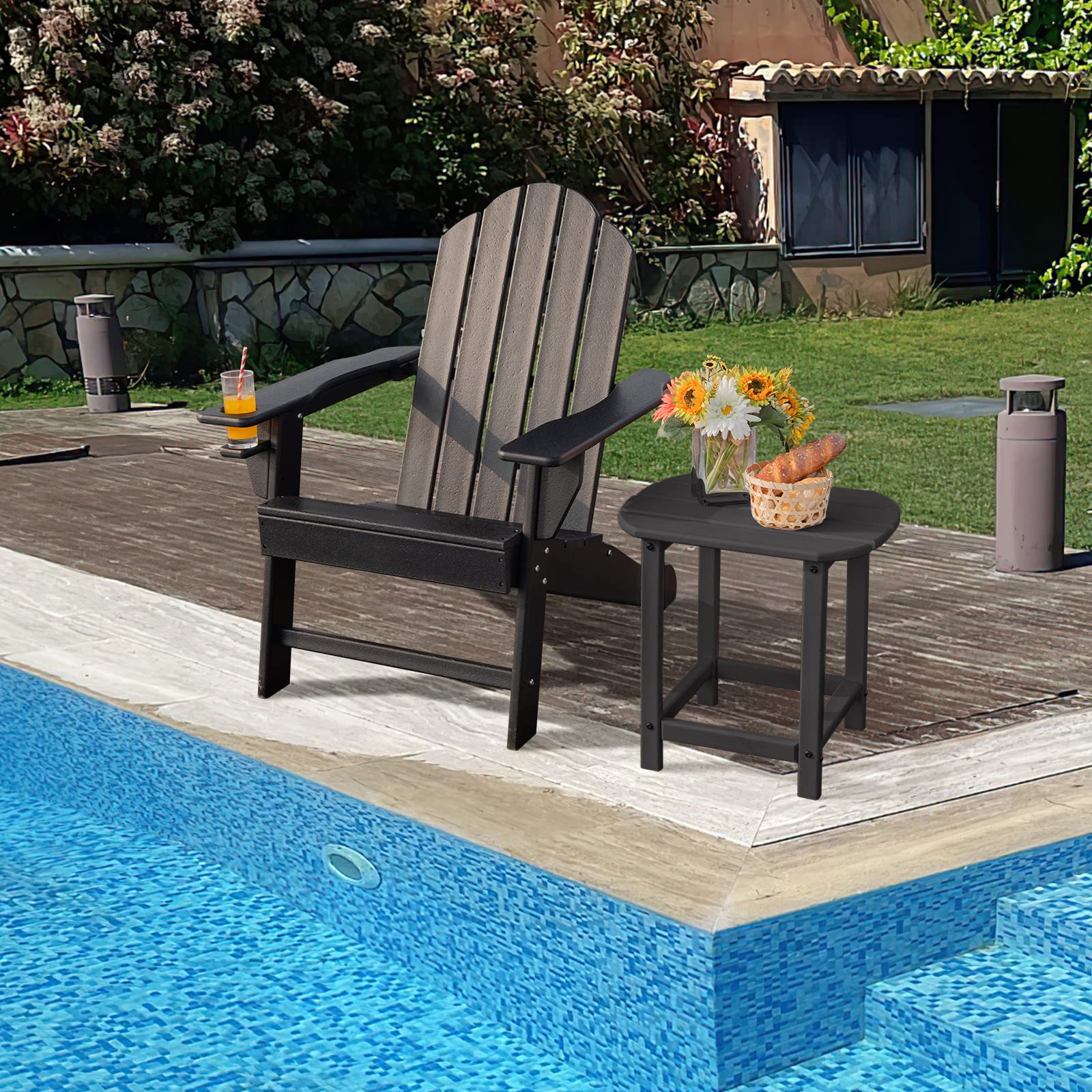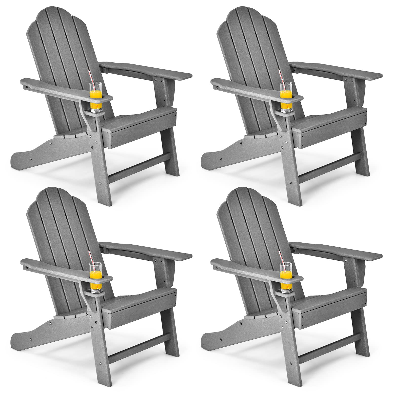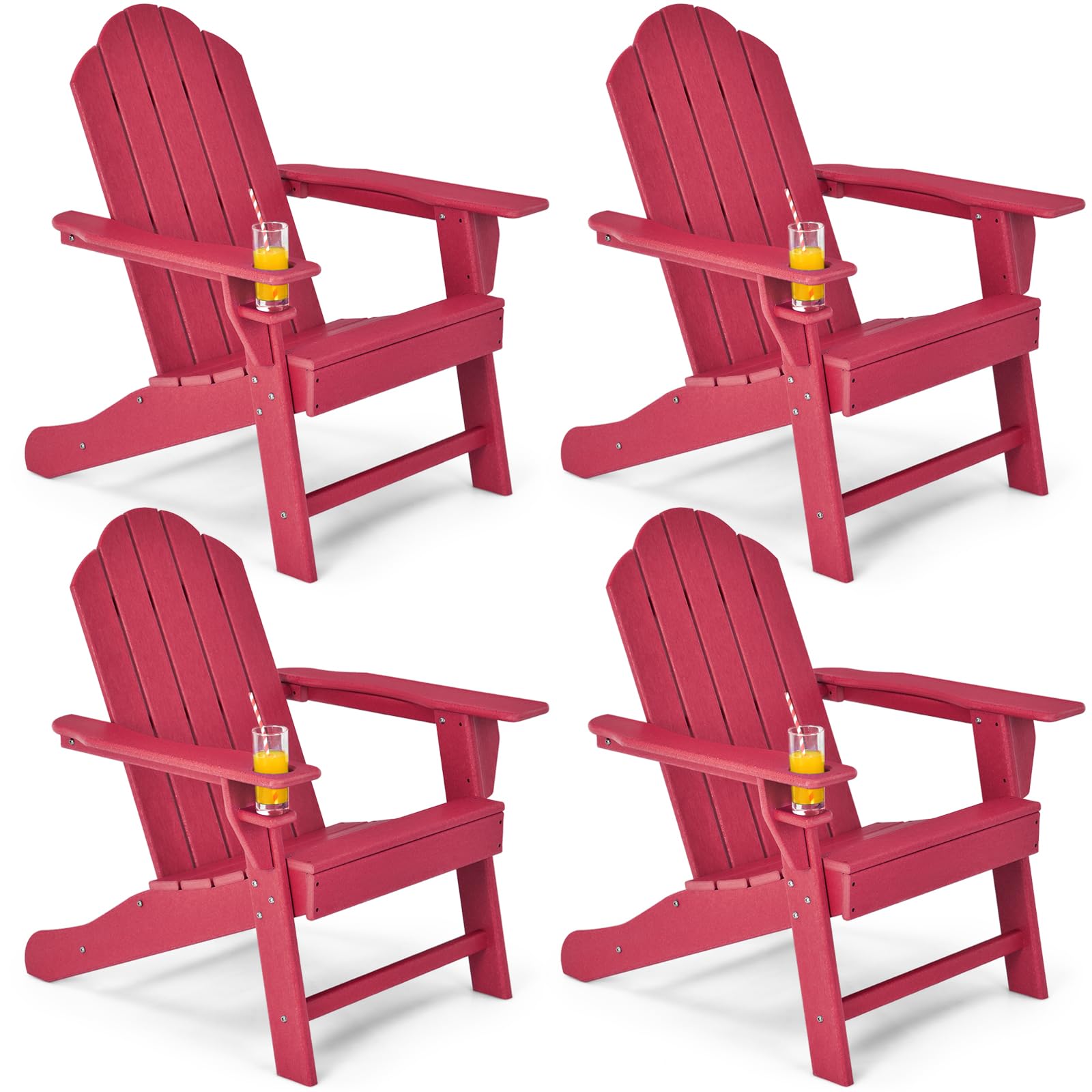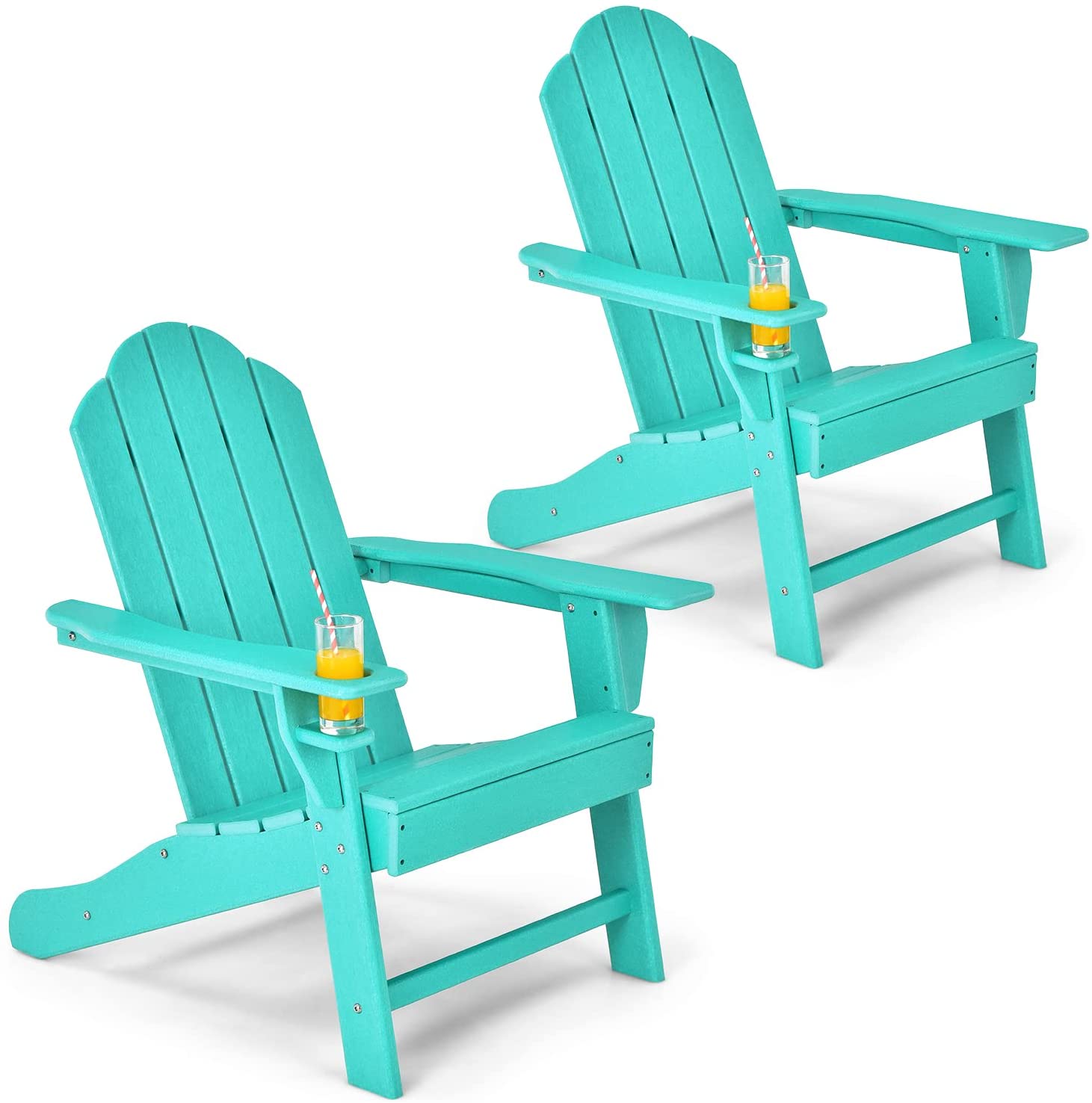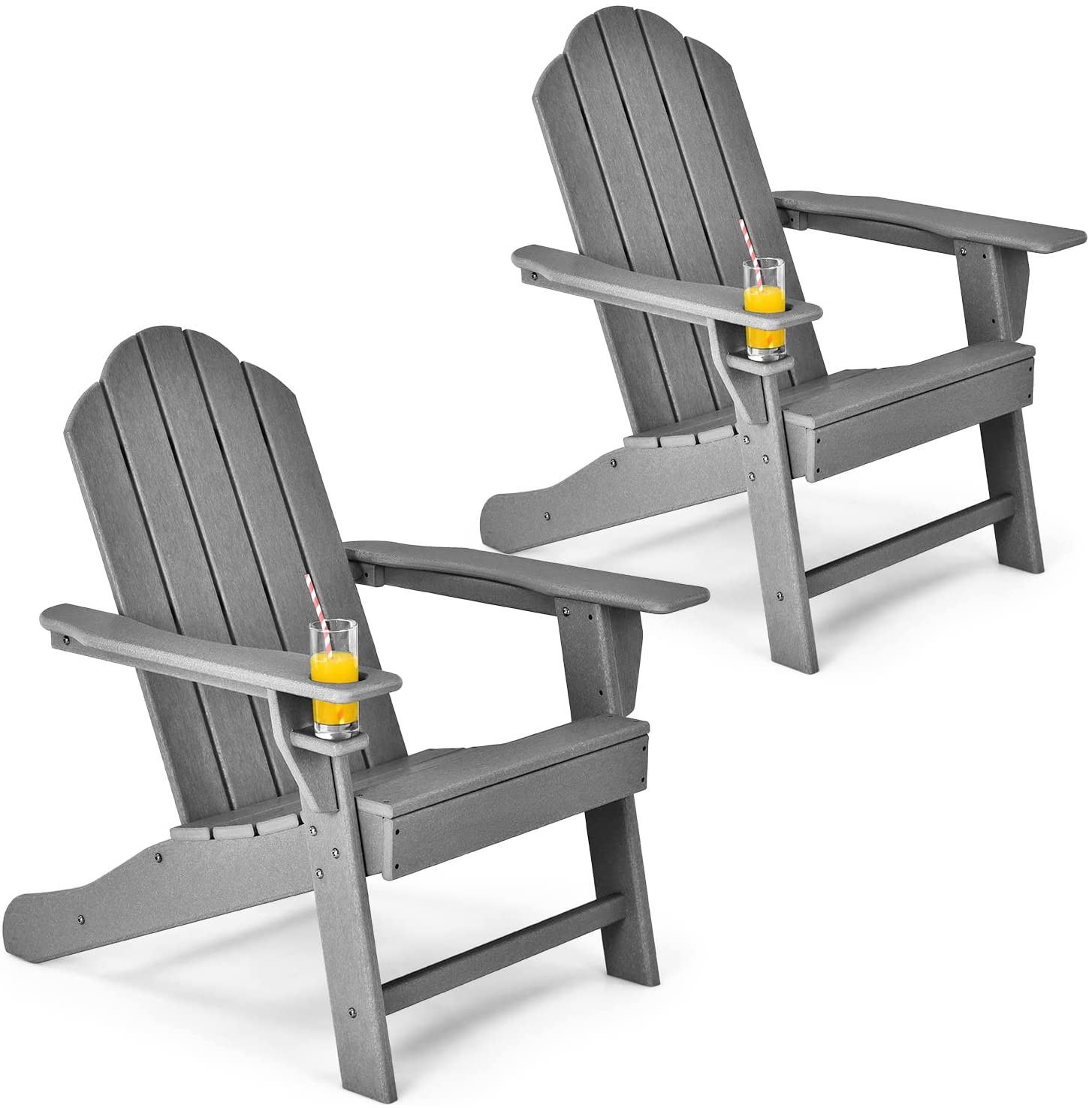 - Built-in Cup Holder for Convenience: It would be inconvenient if you have to go back home to take your drink during the fun patio time. But no worry! Our composite Adirondack chairs help you address this pain point! There is a built-in cup holder (2.7” in diameter) beside your hand. You can easily put cups of different sizes in it, and the cup would stay well. The handy position on the right armrest also lets you get your drinks quickly.