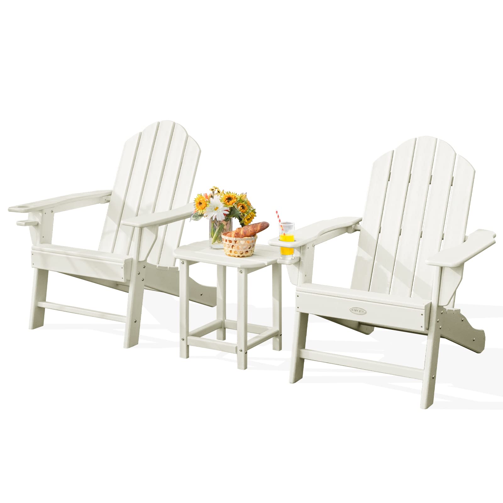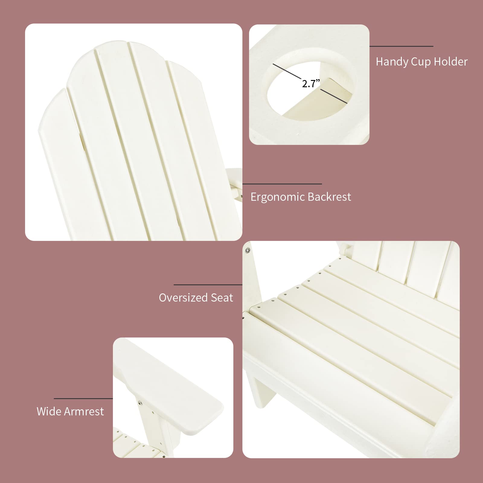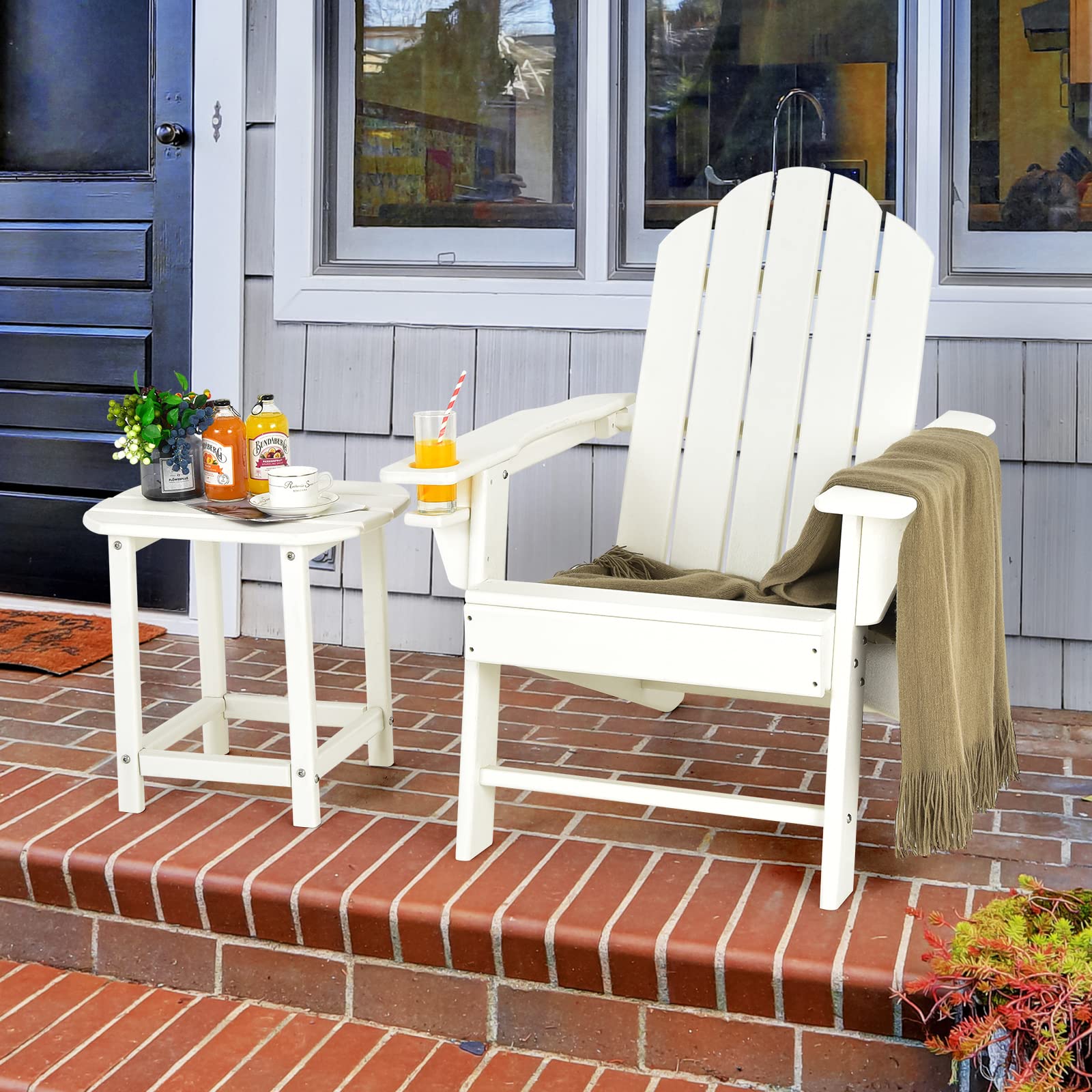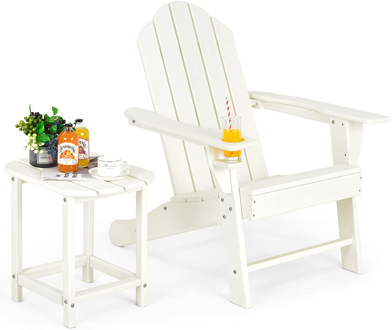 Adirondack Chair with Side Table, Outdoor Fire Pit Chair Set with End Table, White