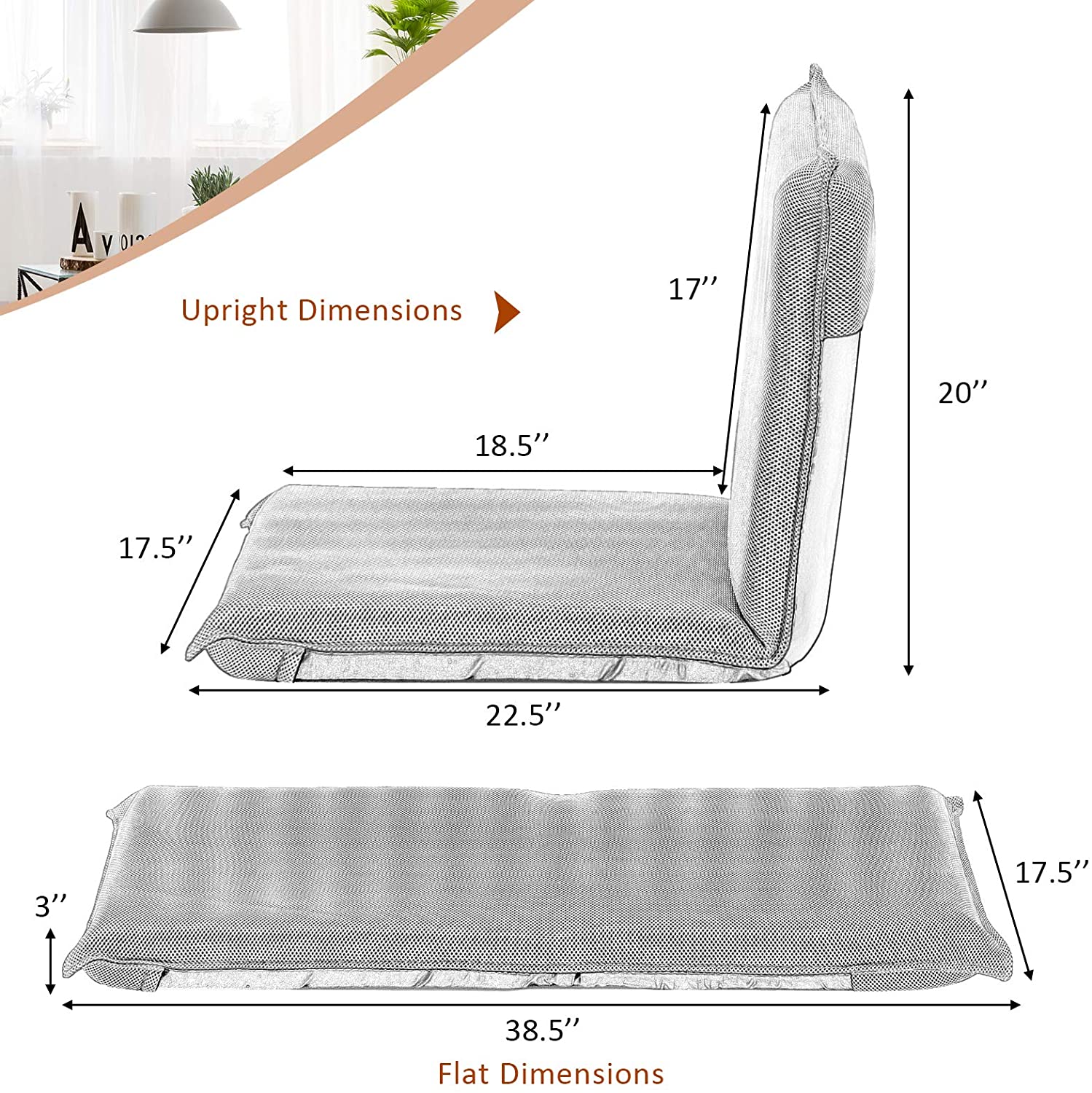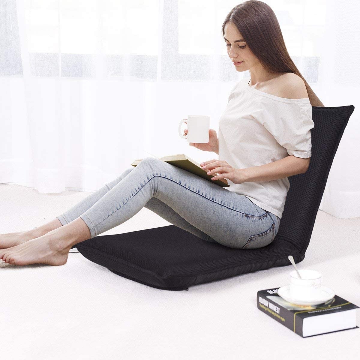 This is our latest floor chair which can be adjusted into 6 positions and satisfy your various demands. It allows you to read, watch TV, play games with your family, chat with your friends or just lie to enjoy your leisure time. And you will feel very comfortable sitting on this soft and thick seat in your bedroom, living room and anywhere you want. Also, it is convenient for you to store under your bed or couch without taking up too much space. Don't hesitate to buy it now!