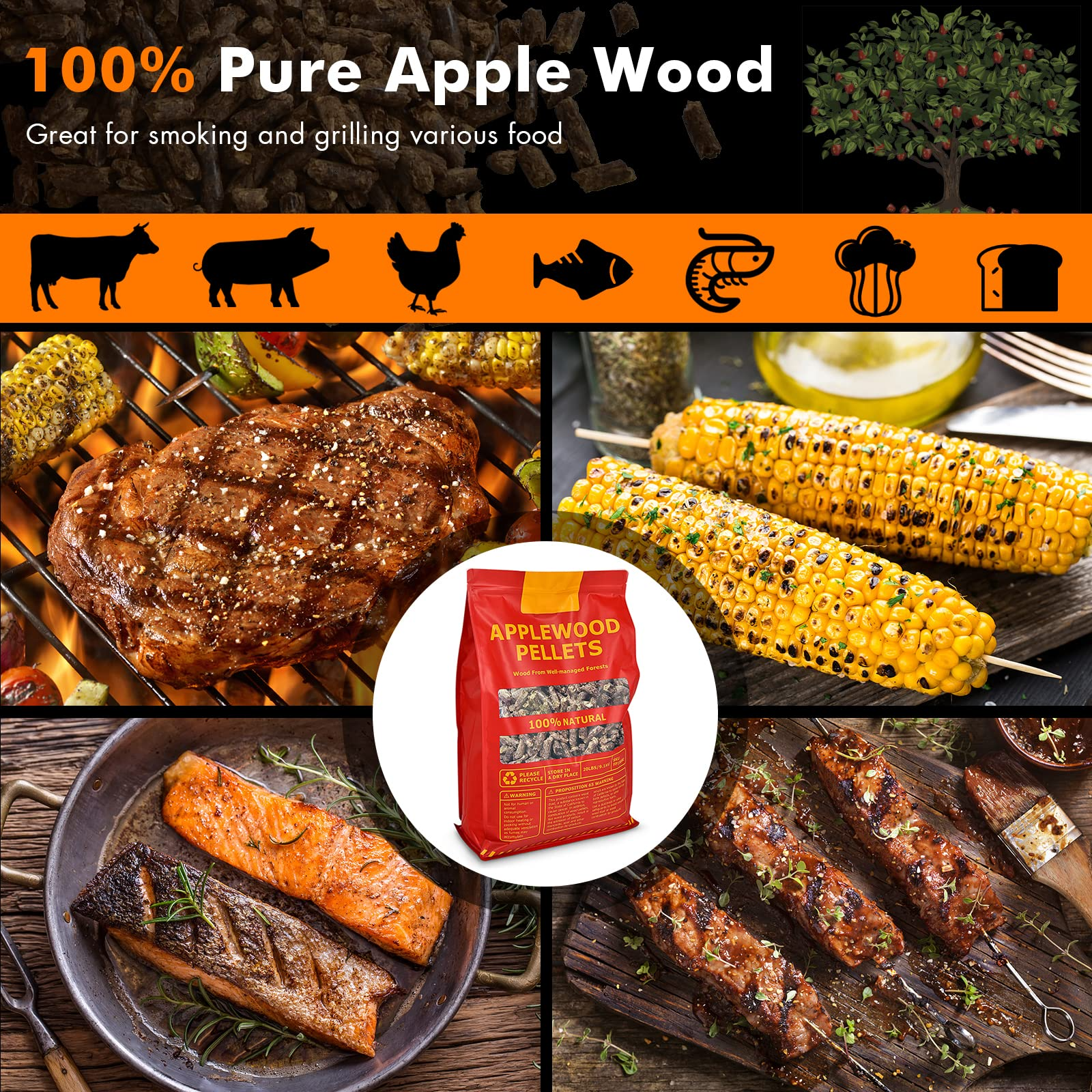 100% Pure Apple Wood: The wood pellets are made from 100% natural apple hardwood without any flavorings, fillers, or additives, leaving you rest assured that it does no harm to your health. Meanwhile, the pleasant and heady aroma of the apple wood pellets will emanate from the grills while cooking.