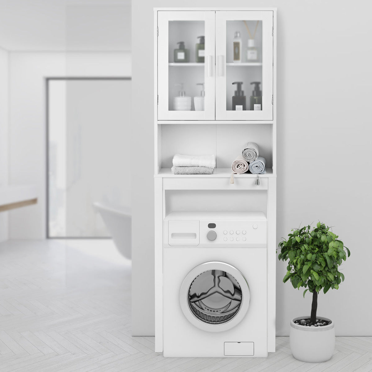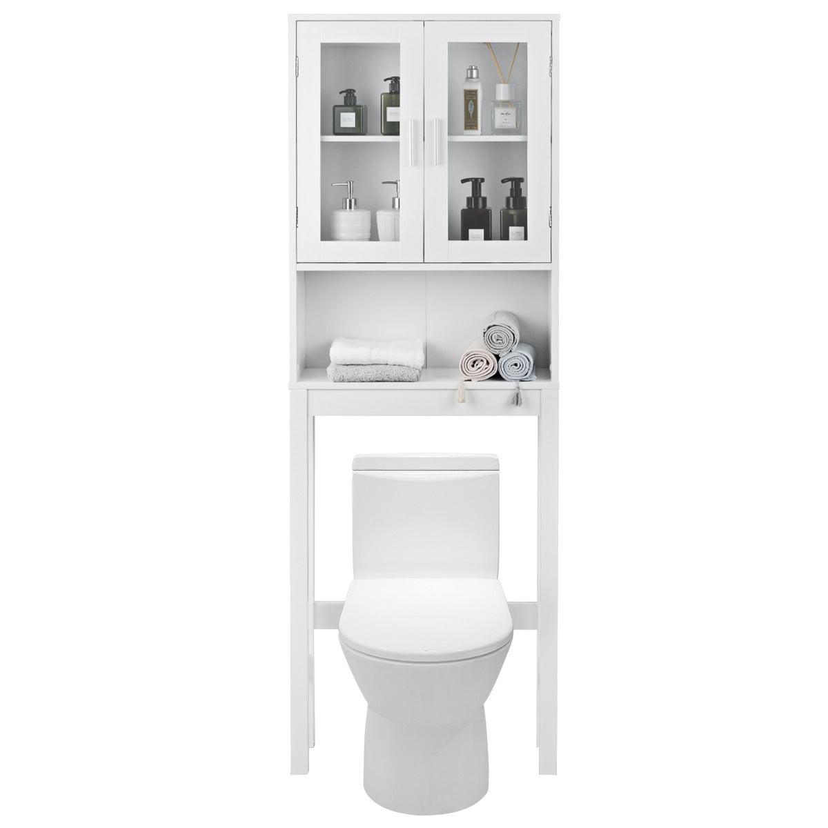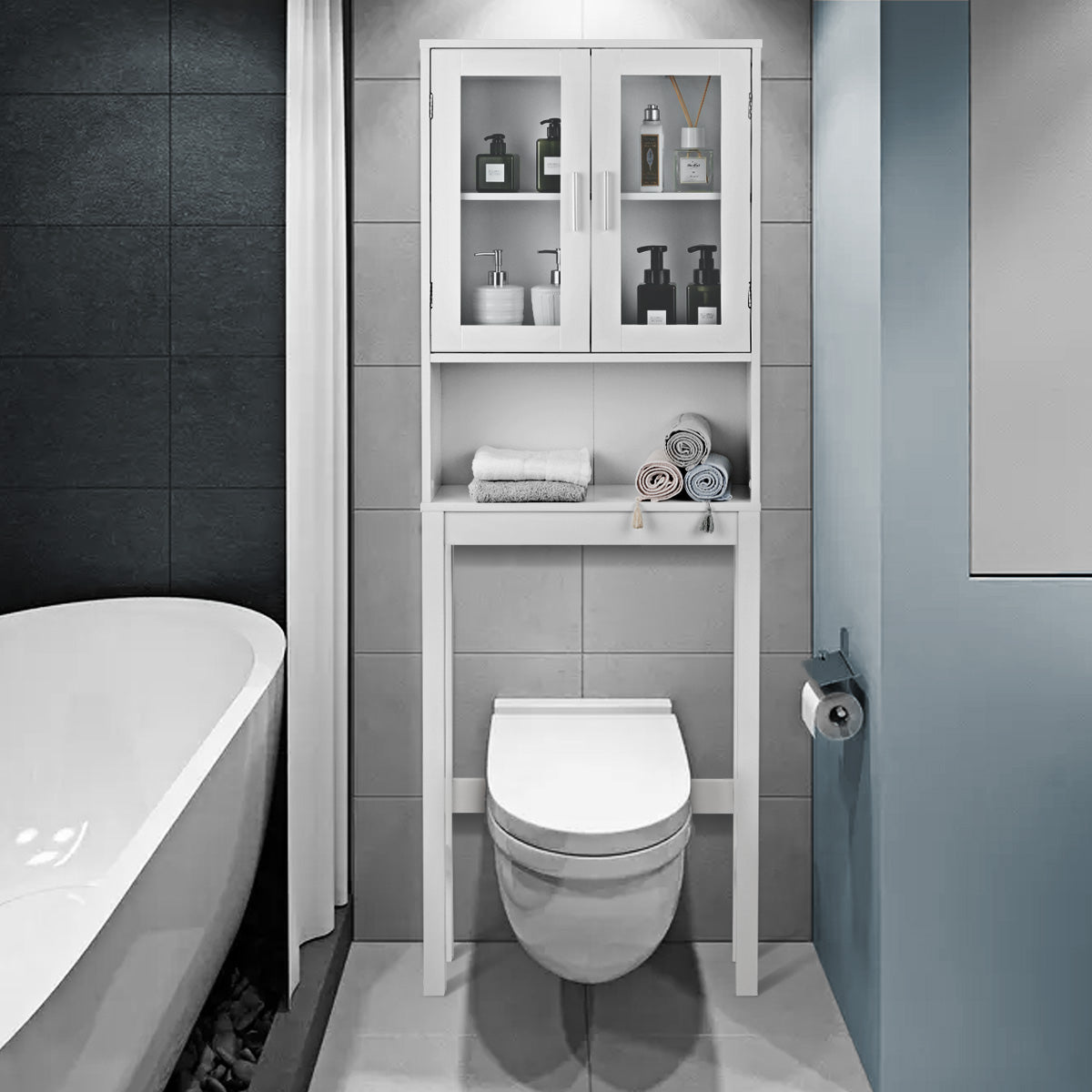 Our brand new clever and versatile bathroom spacesaver allows you to utilize extra space for all your bathroom storage needs. Place this white bathroom space saver around the toilet and add bathroom storage space quickly and easily. Features an two-door cabinet and an open shelf for easy access storage. The cabinet provides excellent storage solutions for bathrooms with limited space. This bathroom space saver features sturdy MDF construction, and its white finish ensures that it will match and accent any existing decor. It is a free standing furniture piece, which conveniently fits over standard toilet tanks and adds easy storage for roll paper and other bathroom necessities. Don?? hesitate to buy it!