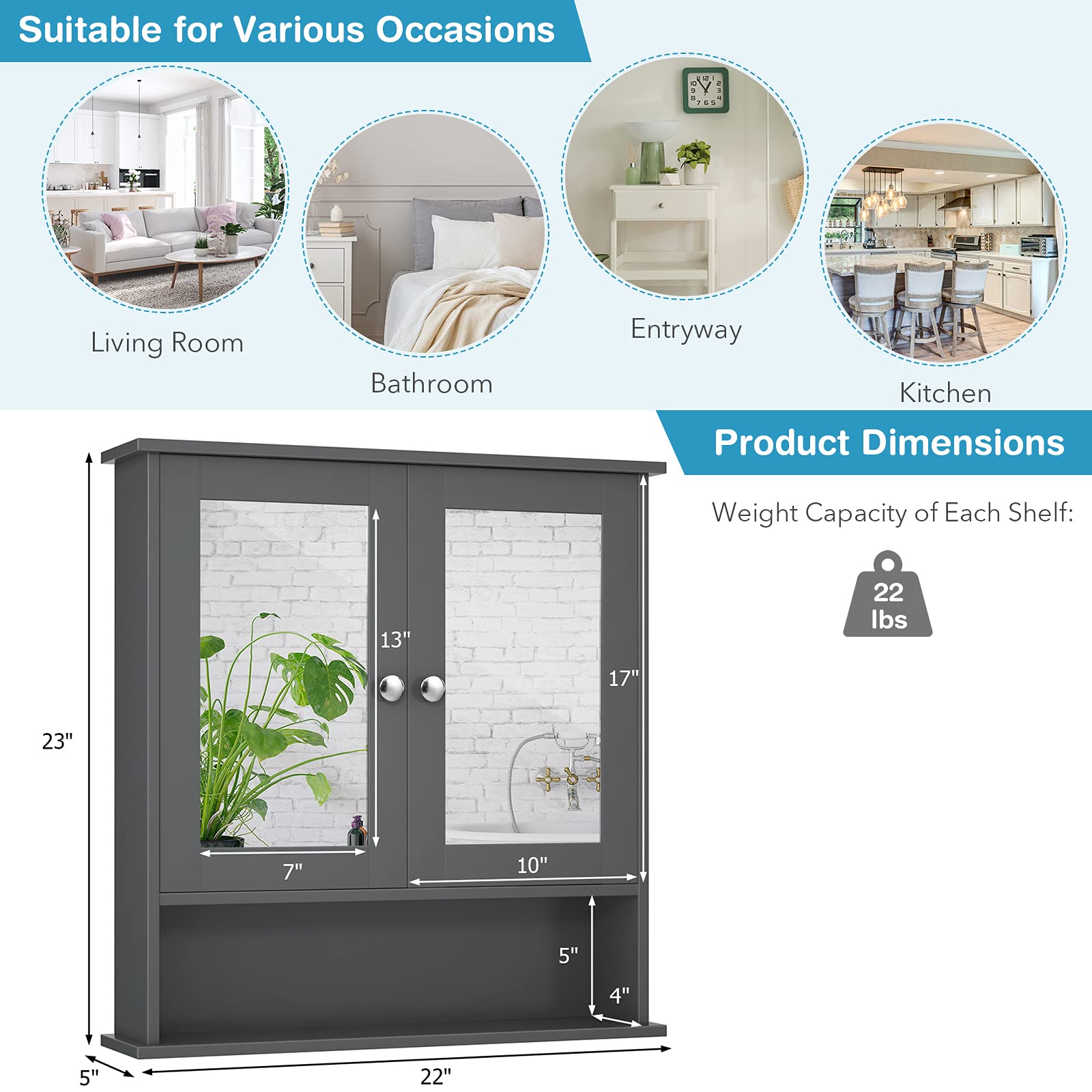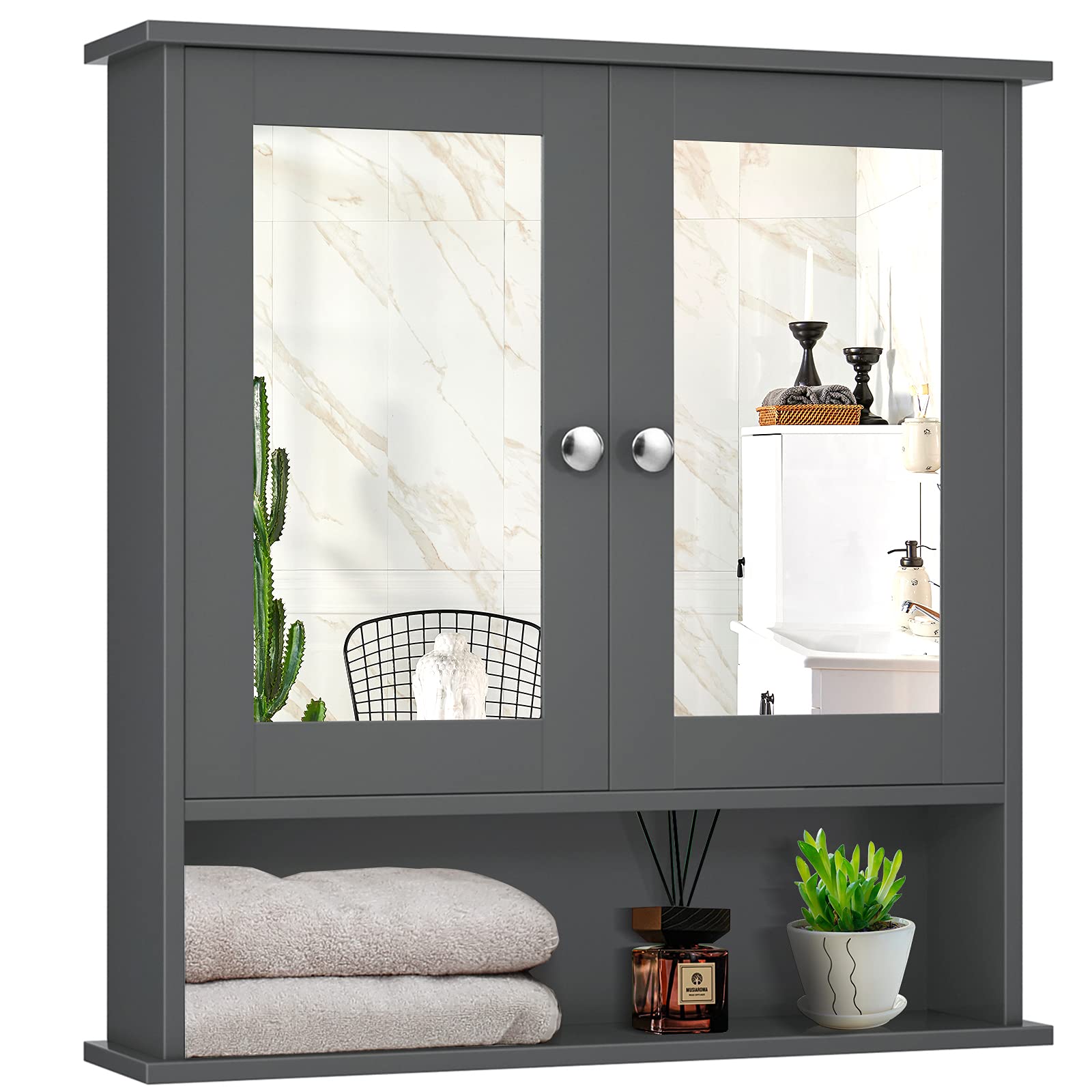Comes with a mirror on both doors for your everyday makeup