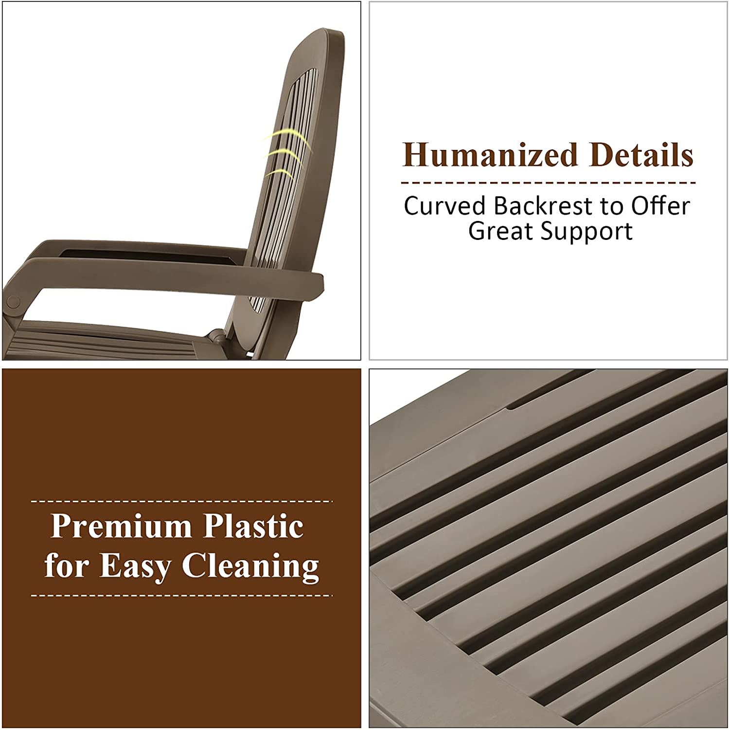 - Sturdy Frame for Better Bearing Capacity: Due to the sturdy triangular frame, the plastic lounger brings excellent stability, which features a great load-bearing capacity up to 330 lbs. So you can use it safely to enjoy your leisure time without worrying about breaking easily. The product dimension (90 degree) is 65.5" x 29" x37" (L x W x H), which is spacious enough to sit.