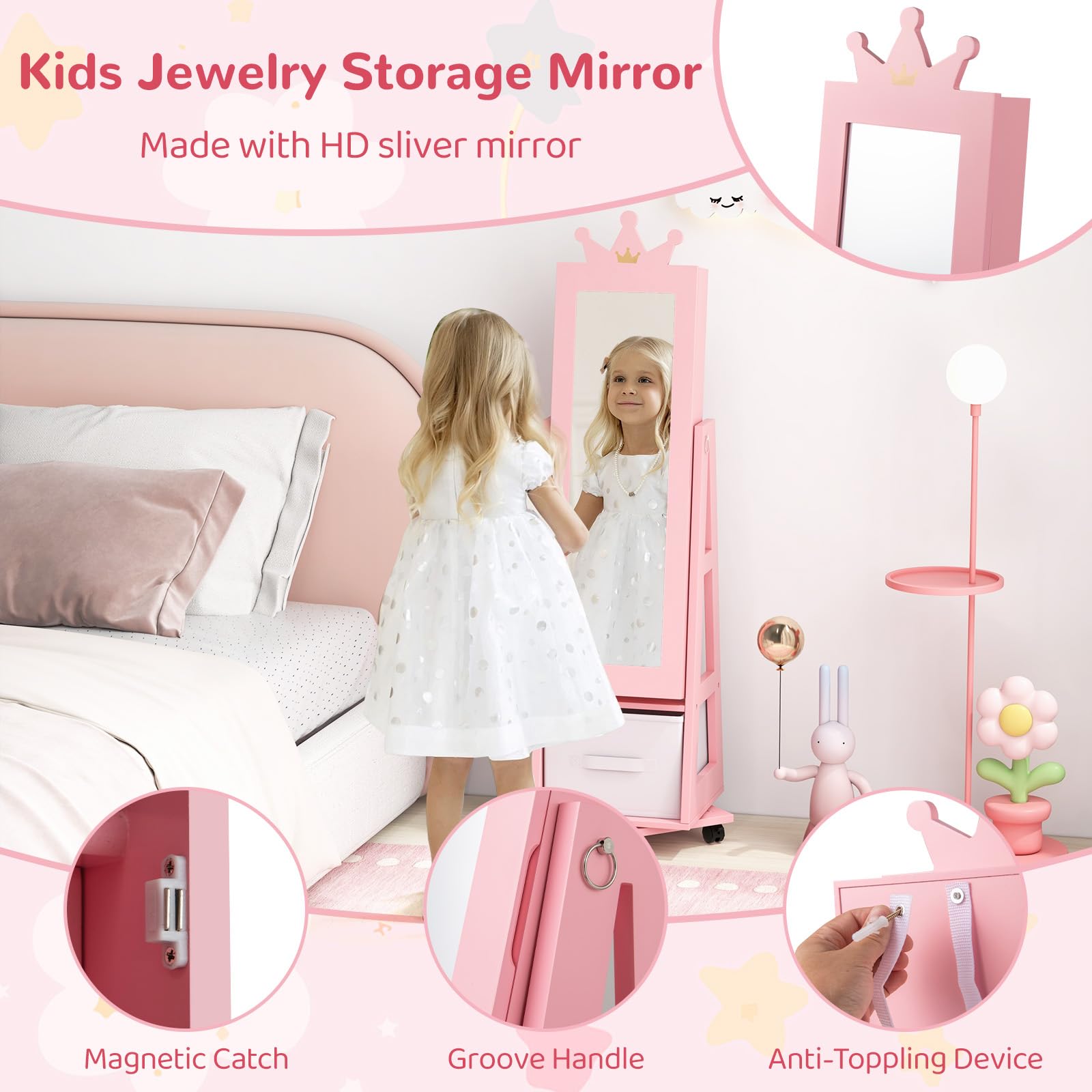 Elevate your child's room with this kids jewelry armoire with a full-length mirror.