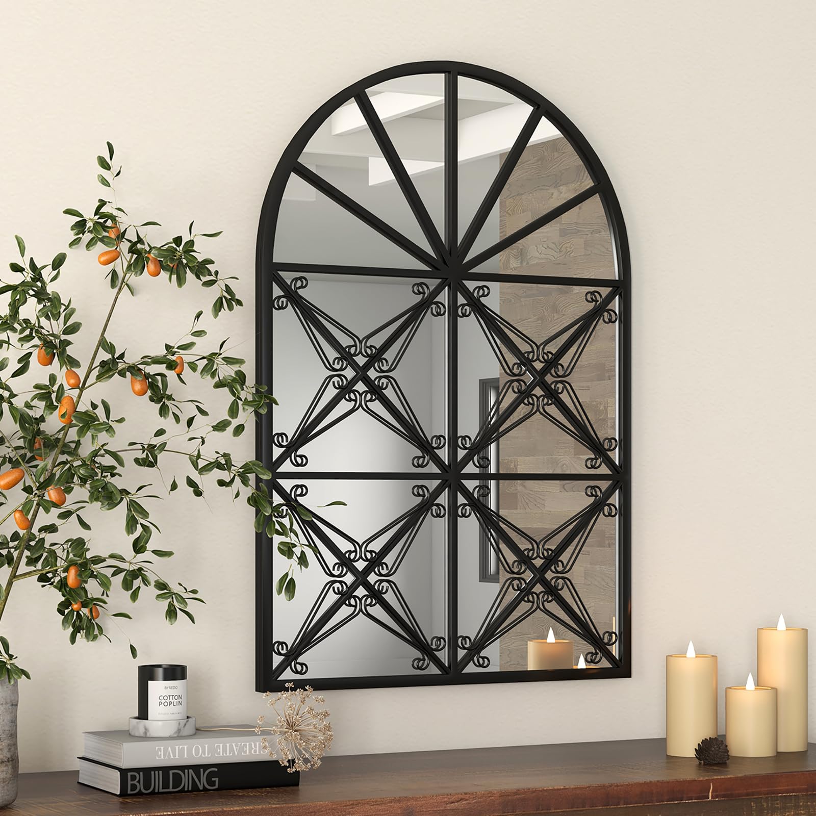 Enhance the elegance of your living space with this exquisite arched decorative mirror.