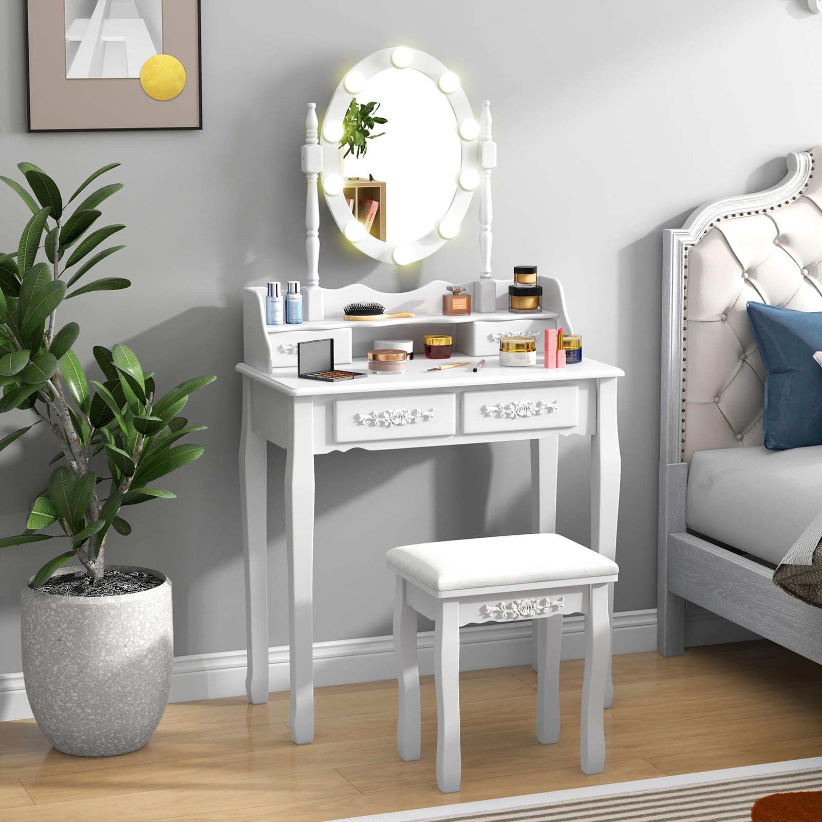 Designed with 4 drawers to store all your cosmetics and jewelry