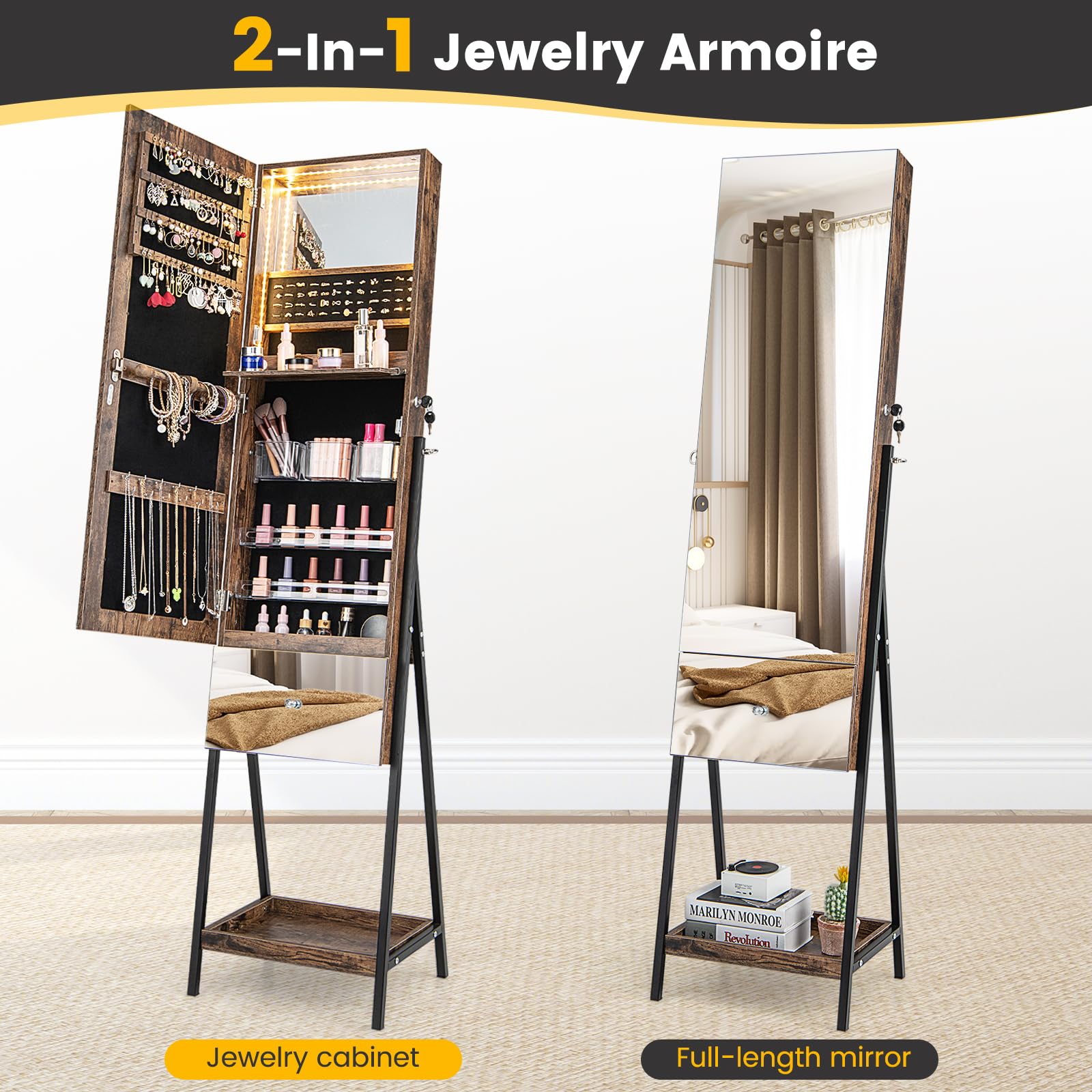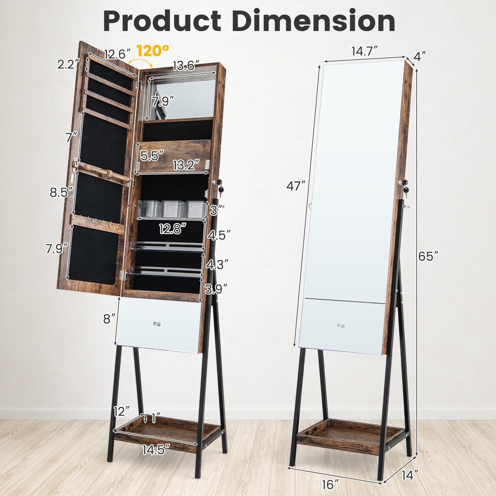 - 【Safe Lockable Cabinet】: The standing jewelry armoire is designed with a lockable construction to ensure the safety of your valuable jewelry, keeping them out of reach from children. It also comes with 2 keys.