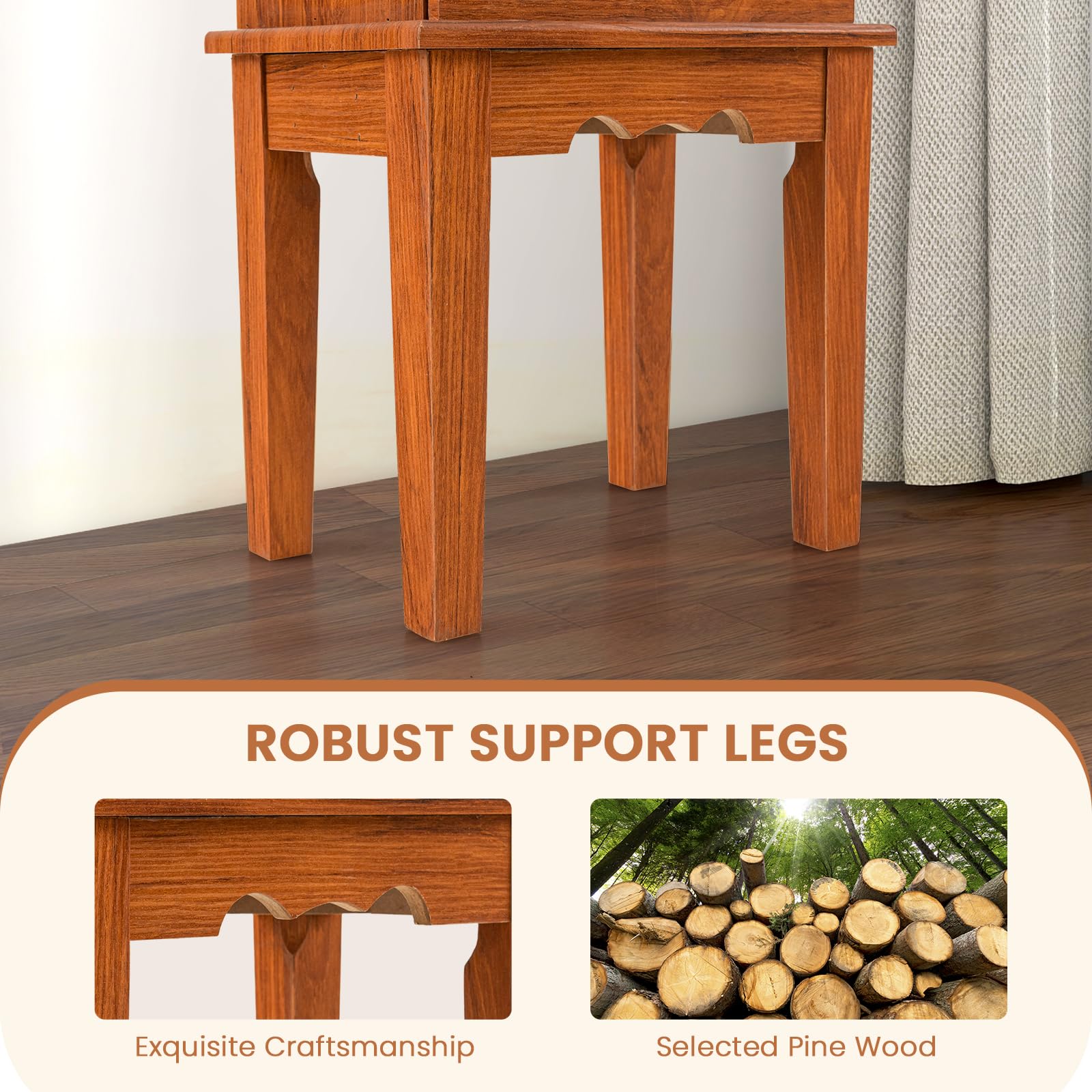 Selected pine wood legs for long-lasting support
