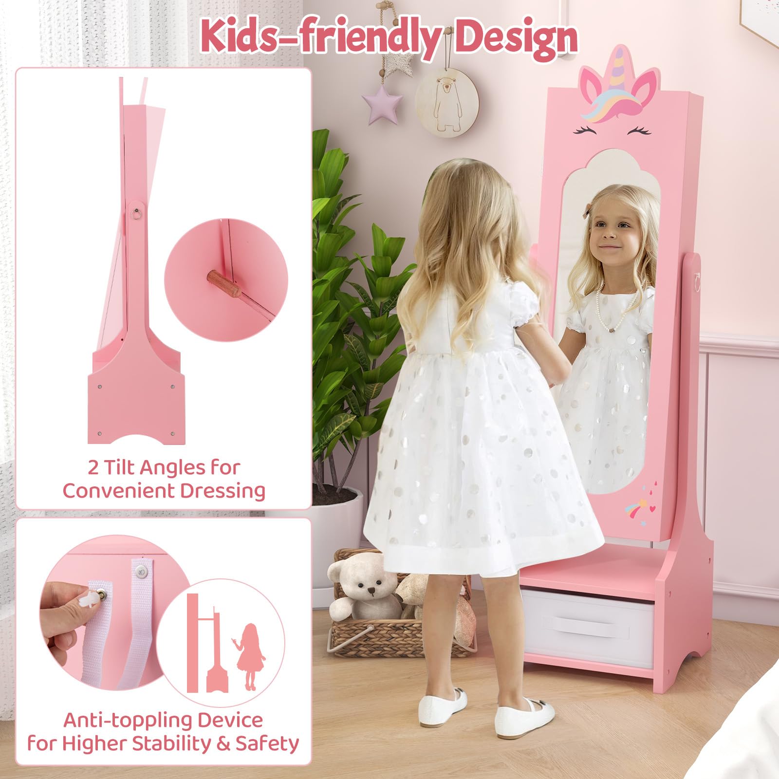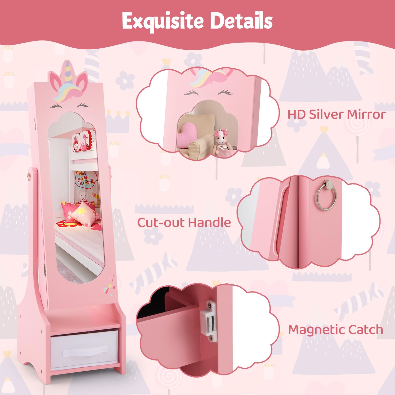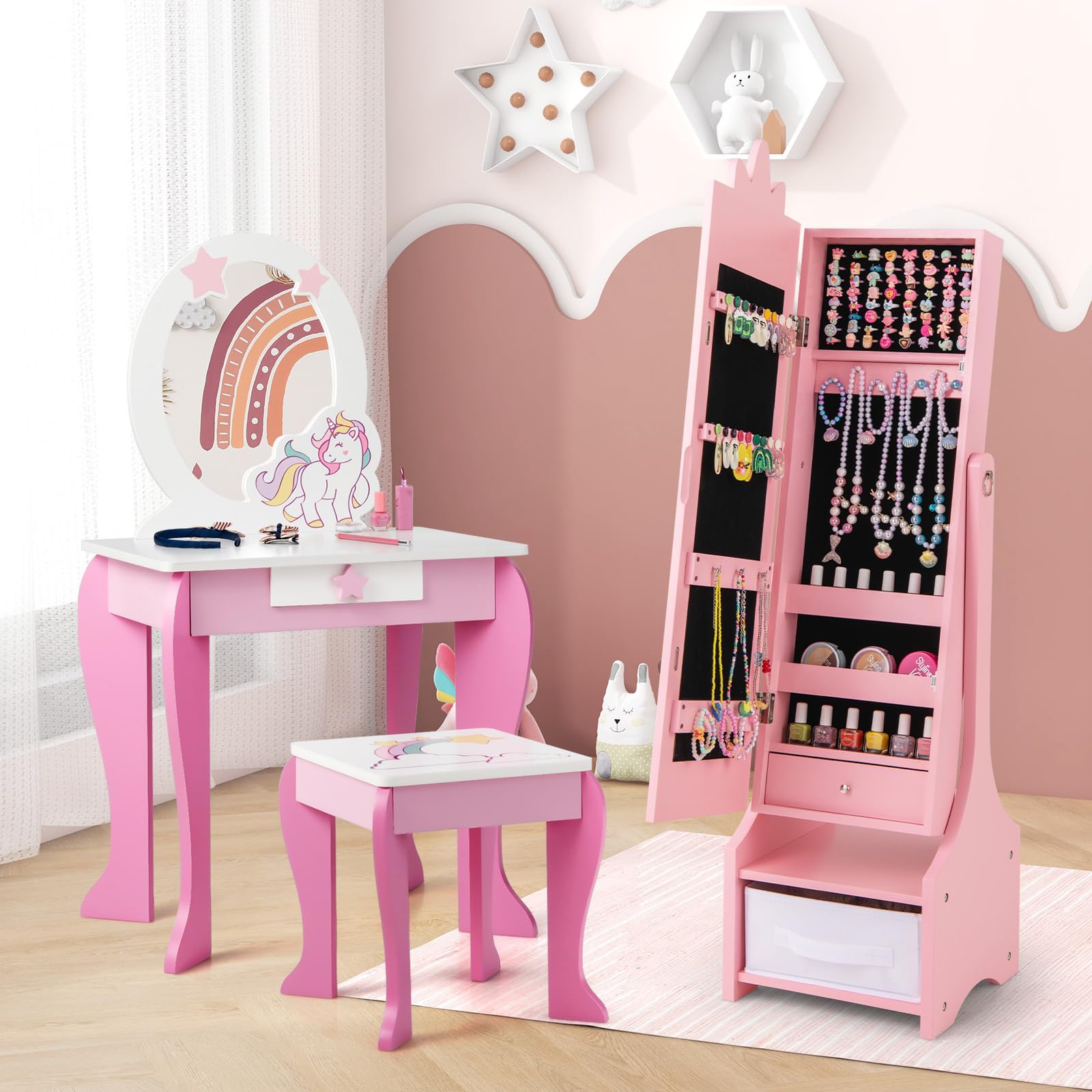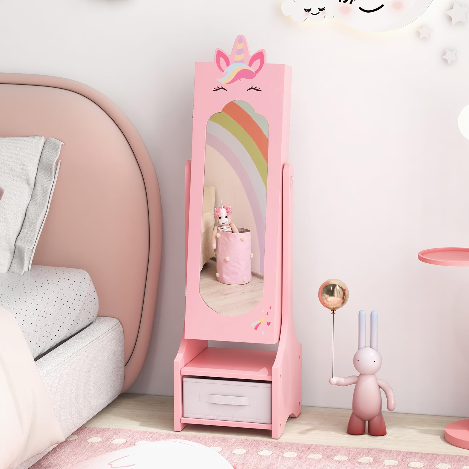 CHARMAID Kids Mirror Jewelry Cabinet - 45.5" Standing Jewelry Armoire with Full Length Mirror