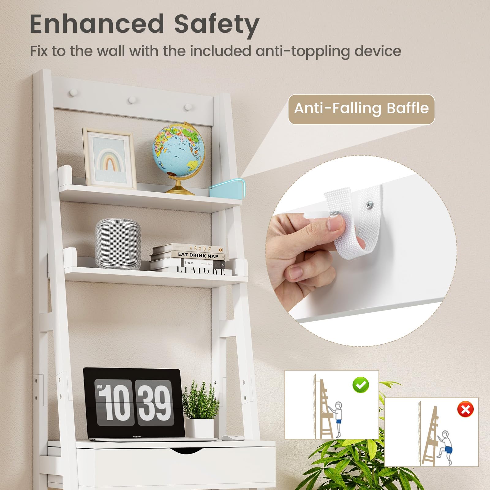 Avoids tip-over accidents with the included anti-toppling kit