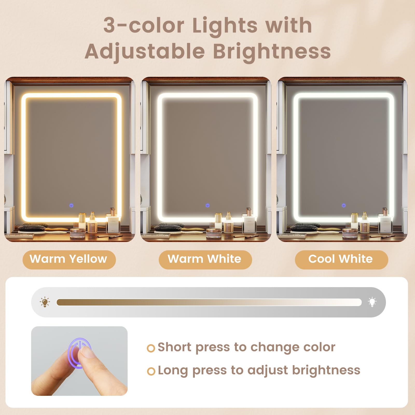 Clear mirror with lights of 3 colors and adjustable brightness for makeup needs