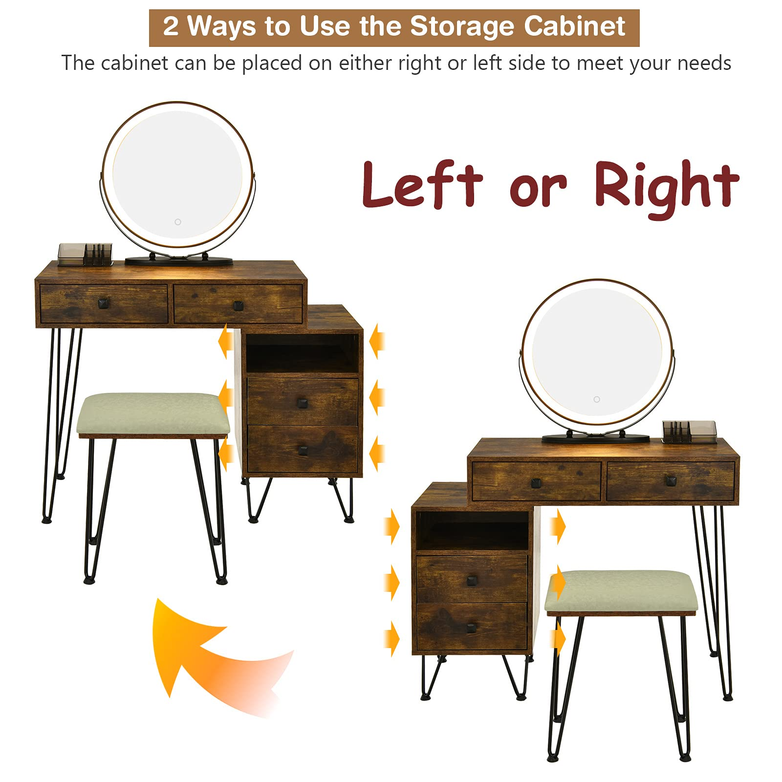 - Side Cabinet & Additional Storage Box: The side cabinet can be installed on either left or right side as you like. In addition, the transparent storage organizer on the tabletop can store your lipsticks, brushes, perfumes, etc.