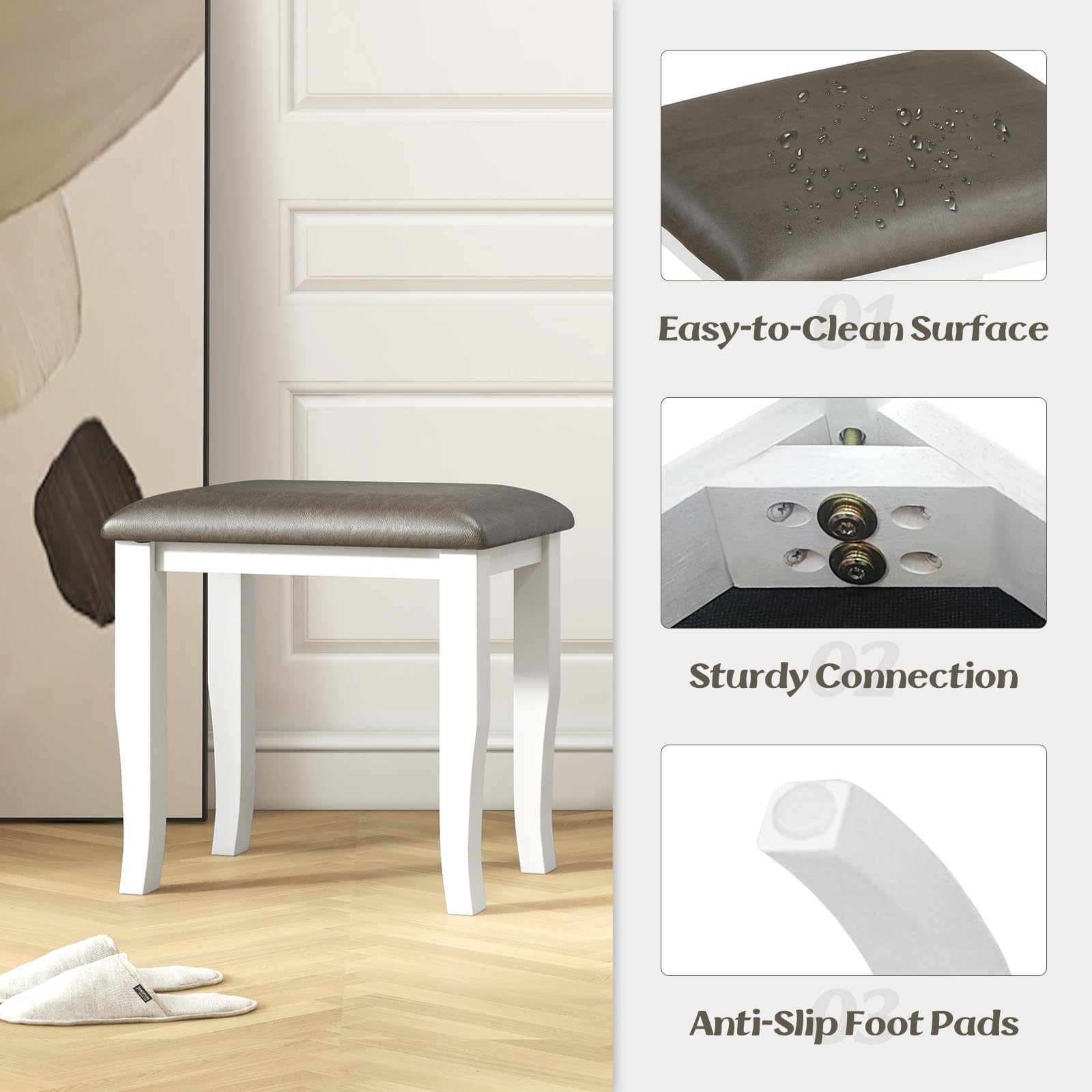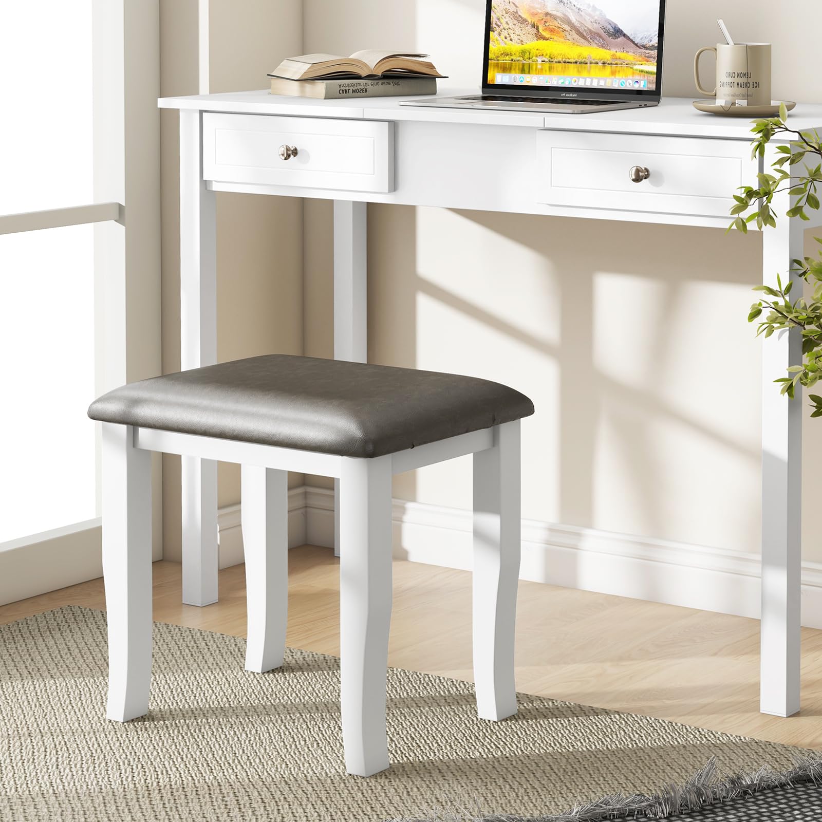 - Comfy Cushioned Seat: These vanity chairs feature high-density foam padding for a comfortable and supportive seating experience while doing your makeup, styling hair, or getting ready for the day.