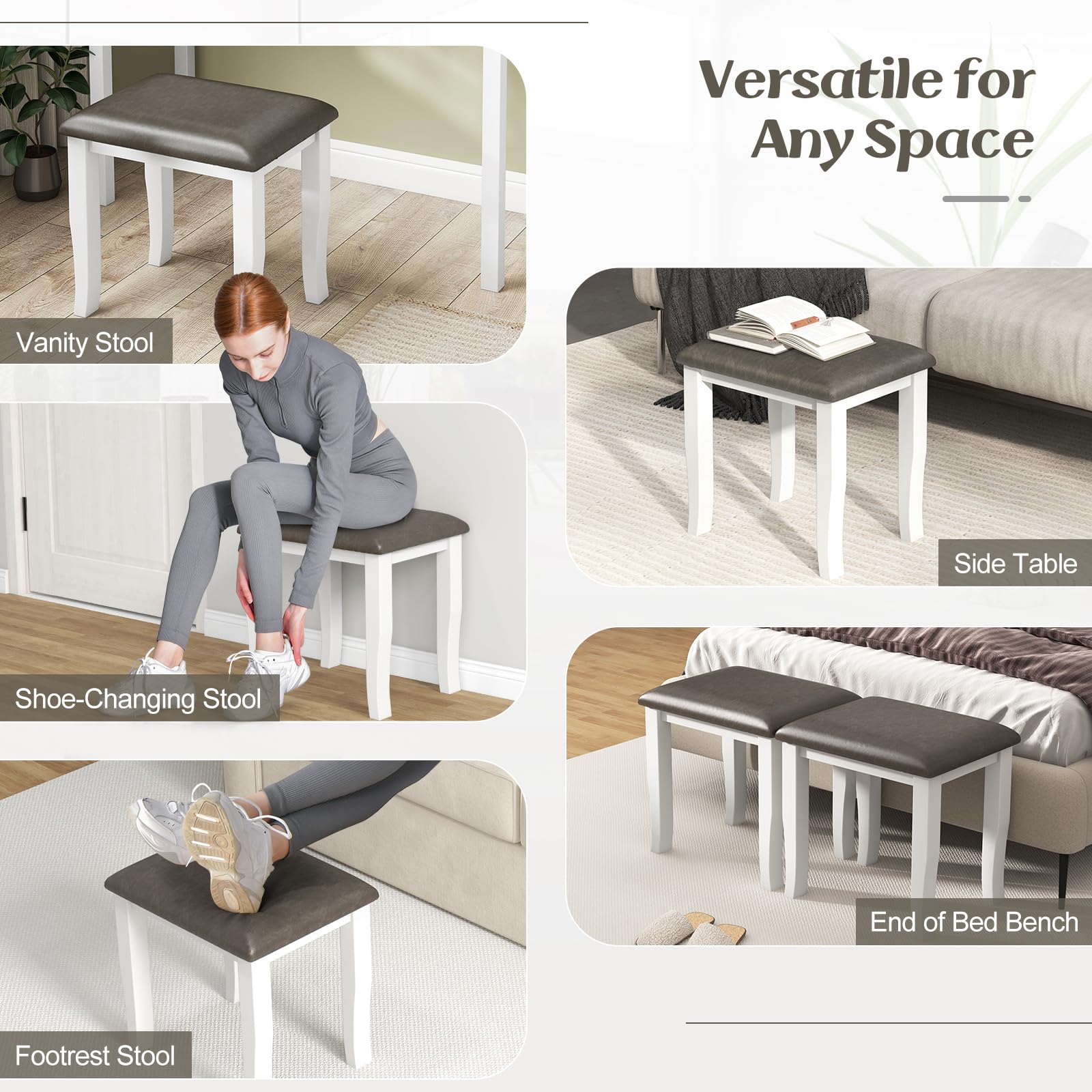 - Versatile Ottoman Set: These ottomans are perfect for makeup vanity tables, or as extra seating in any room. They can also be used as shoe-changing stools, footrest stools, side tables, end-of-bed benches, and more.