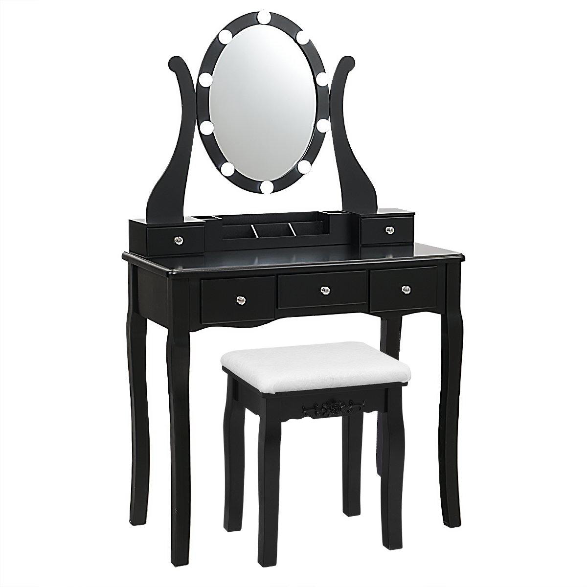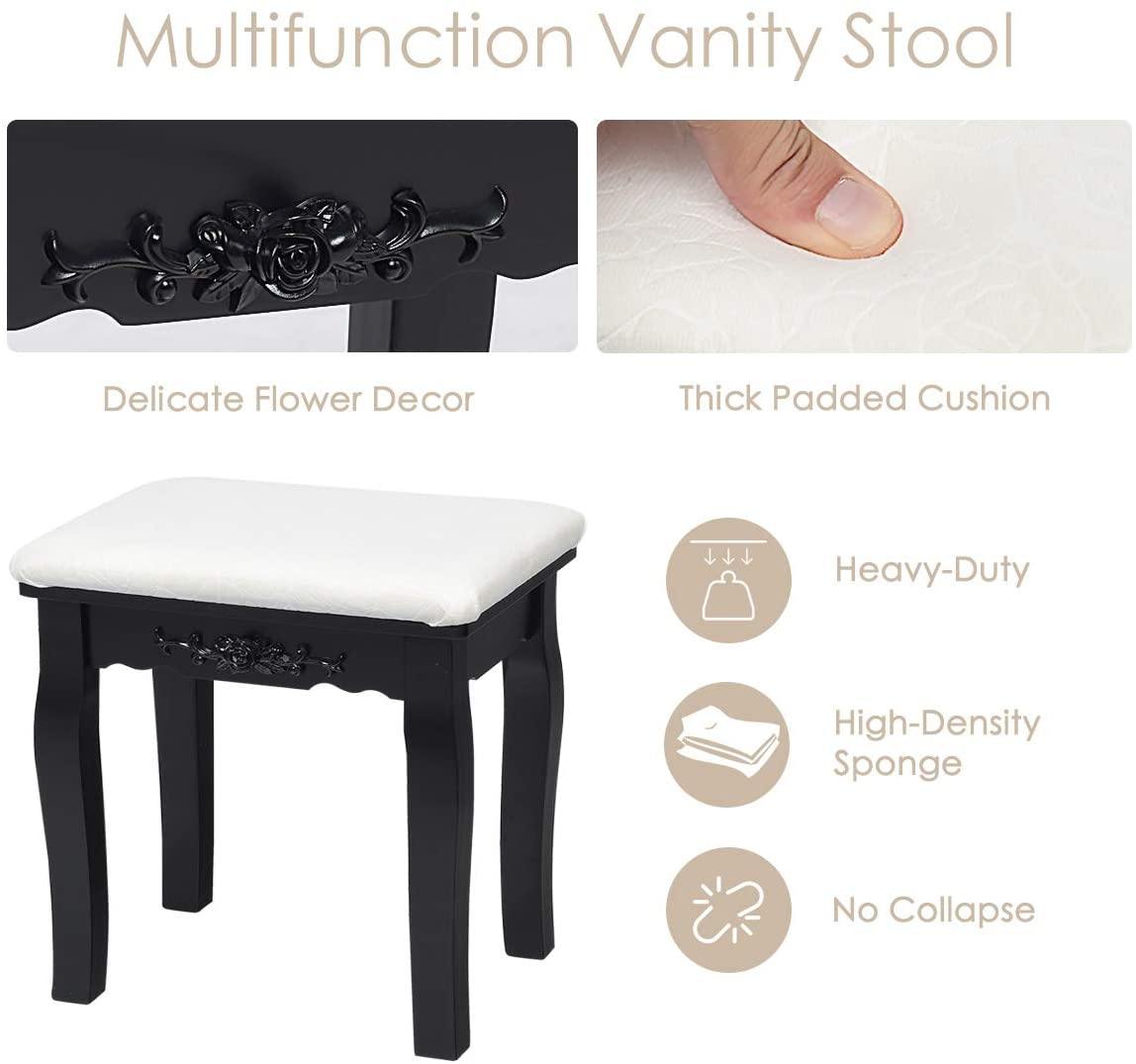 A spacious desktop and 5 drawers provide ample storage space for your cosmetics.