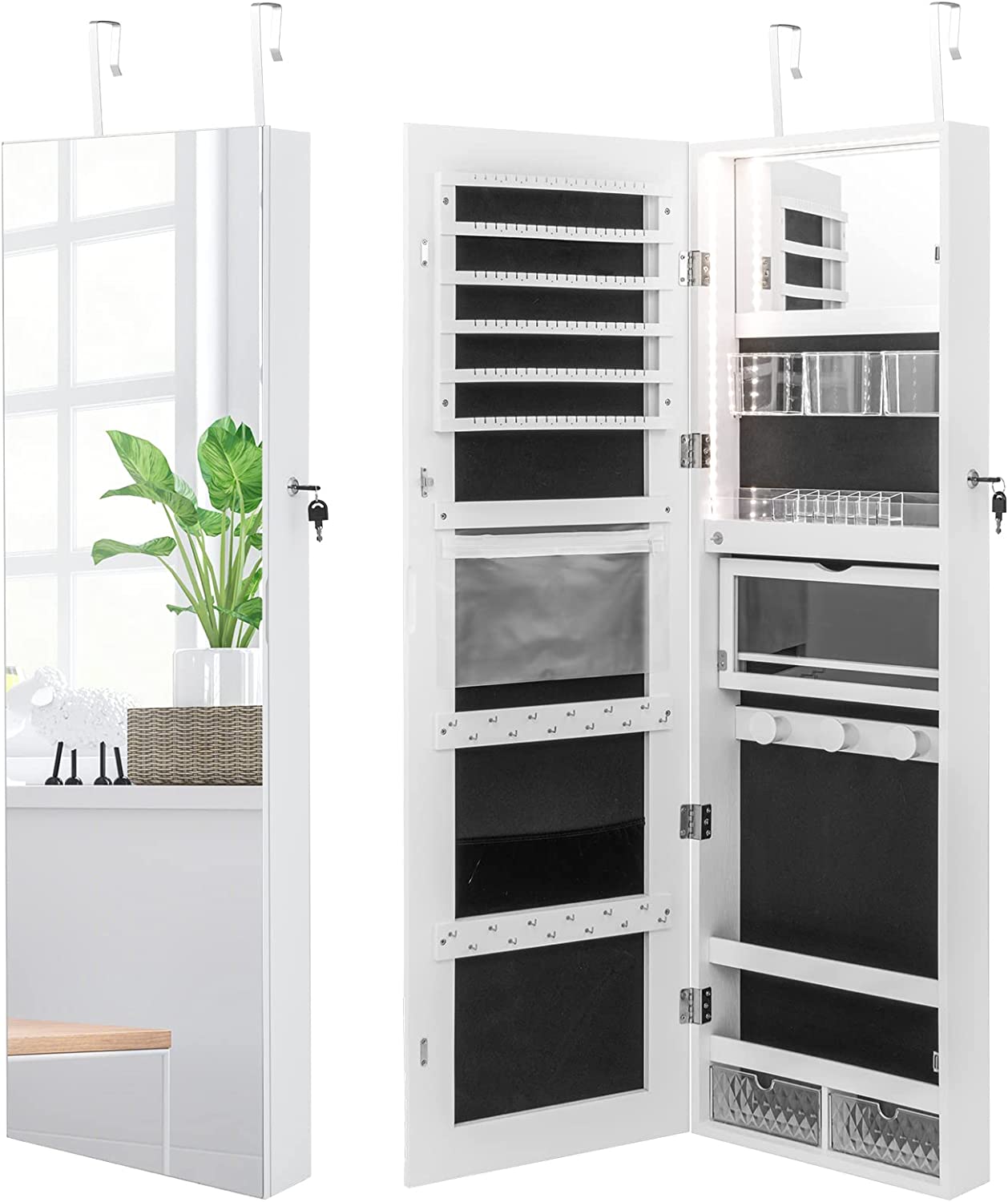 Product form CHARMAID Wall/Door Mounted Jewelry Armoire with 3-Color LED Lights, 47.2"H Full Length Mirror $229.99 ColorWhite Shipped today? Order within: Oct 05, 2025 17:00:00 -0700 Quantity Add to cart This item is a recurring or deferred purchase. By continuing, I agree to the cancellation policy and authorize you to charge my payment method at the prices, frequency and dates listed on this page until my order is fulfilled or I cancel, if permitted. Your order will be shipped for free!