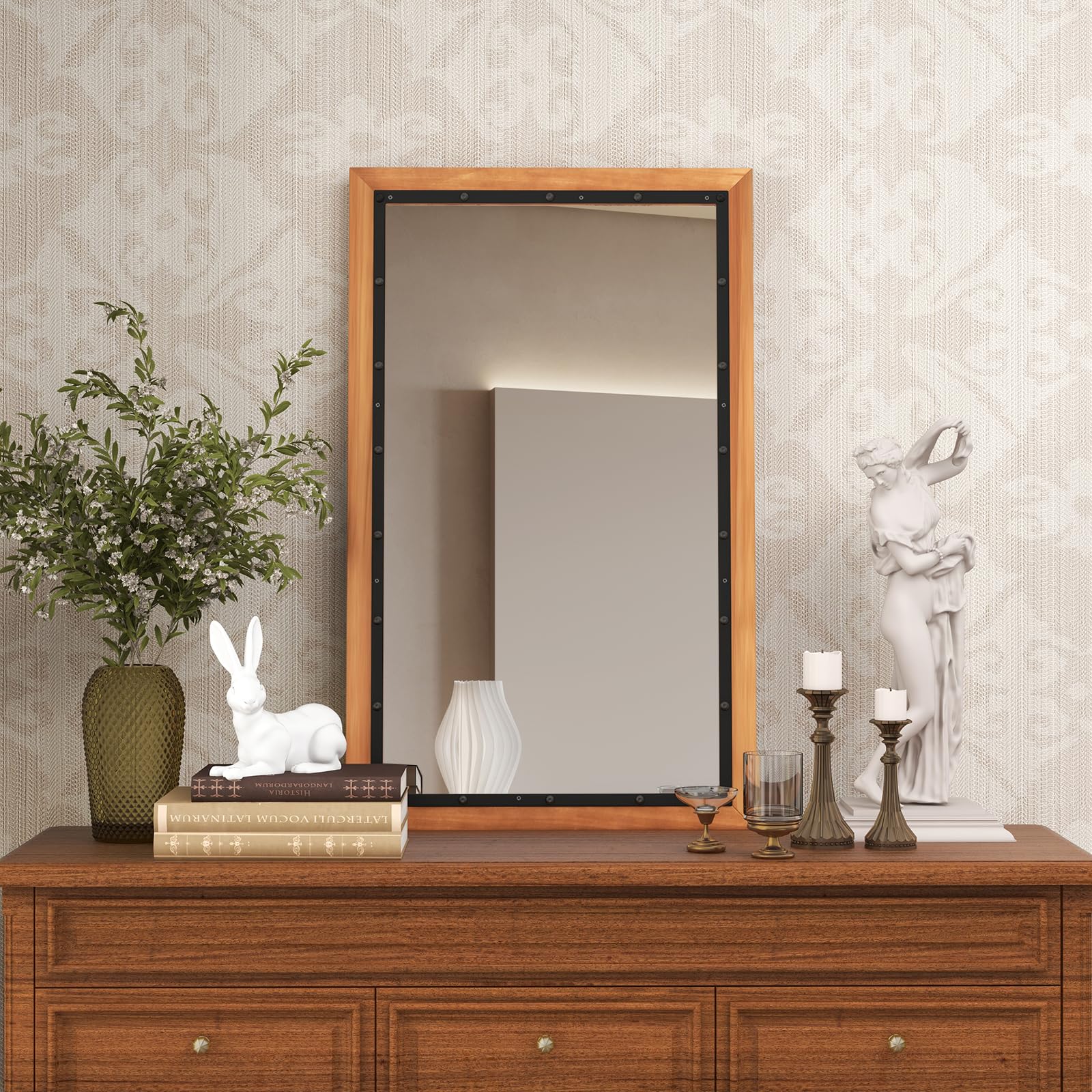 - Farmhouse Rustic Style: This rectangular wall mount mirror boasts a sleek and clean design with a natural wood frame that exudes farmhouse rustic charm. It effortlessly complements any home decor, adding an elegant touch to your space.