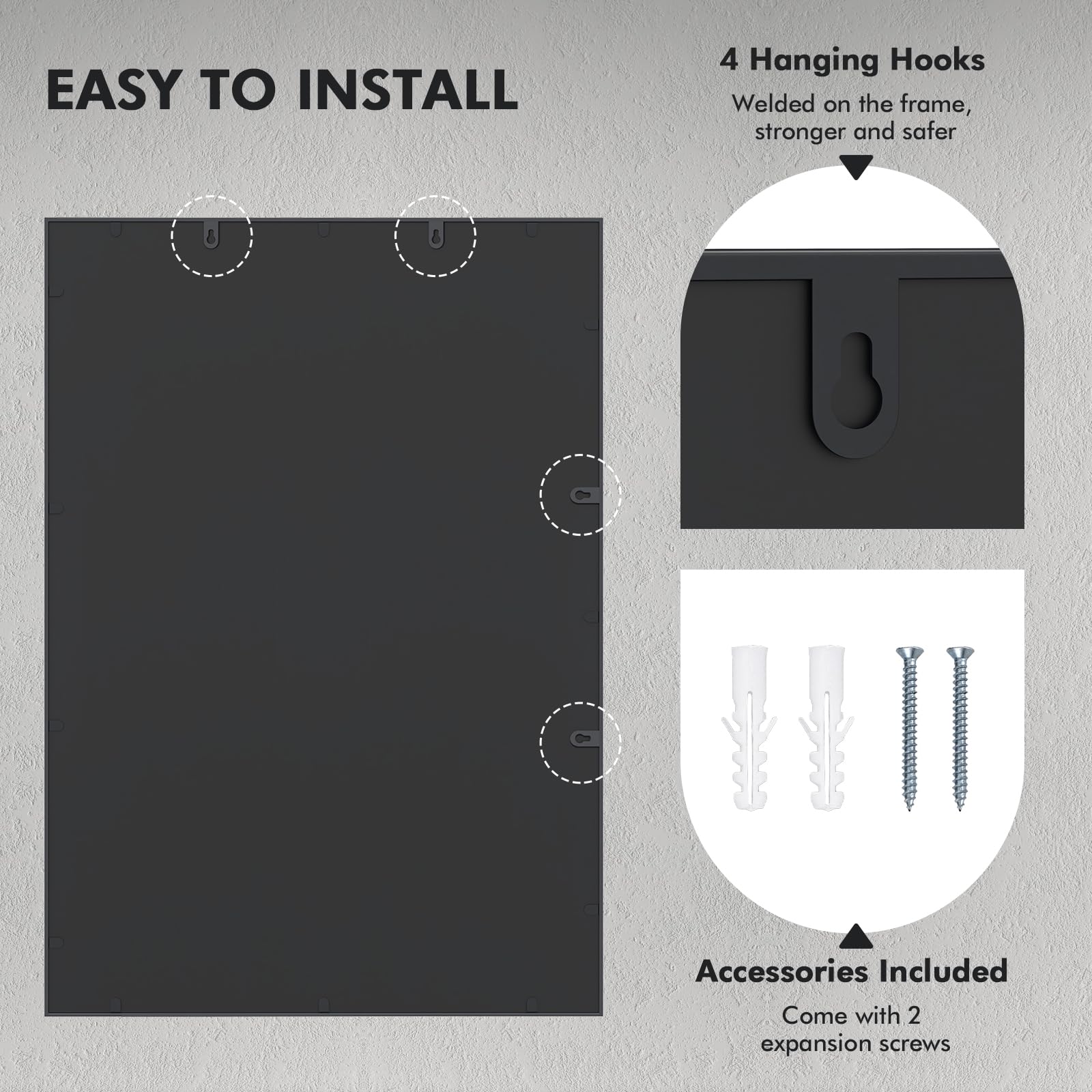 - [Easy Installation]: This rectangular wall mirror comes with four welded hanging hooks on the frame, ensuring secure and safe installation. Complete with included accessories, the installation process is hassle-free.