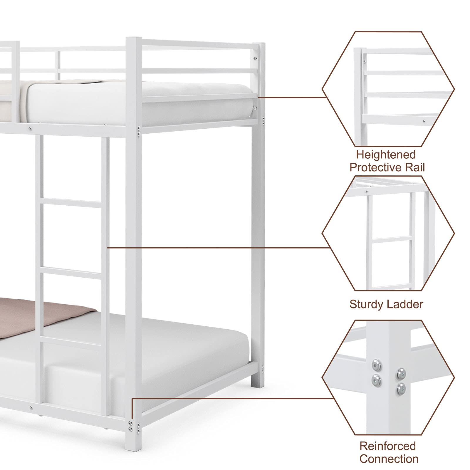 - Sturdy Metal Frame: Made of high-quality steel and durable hardware, our bunk bed is sturdy and not easily deformed. Both the upper bunk and the lower bunk can bear a weight of 220 pounds. Besides, featuring a powder-coated finish, this metal bed frame is wear-resistant and not easy to rust.