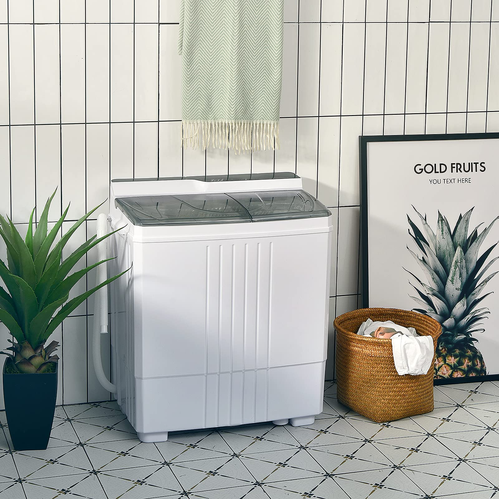 - 21LBS Capacity Meets Daily Needs: This twin tub washing machine is designed with 14.4 lbs capacity for washing tub and 6.6 lbs capacity for drying tub. It can accommodate your shirts, jeans, sweaters, underwear, or jacket to meet your daily needs.