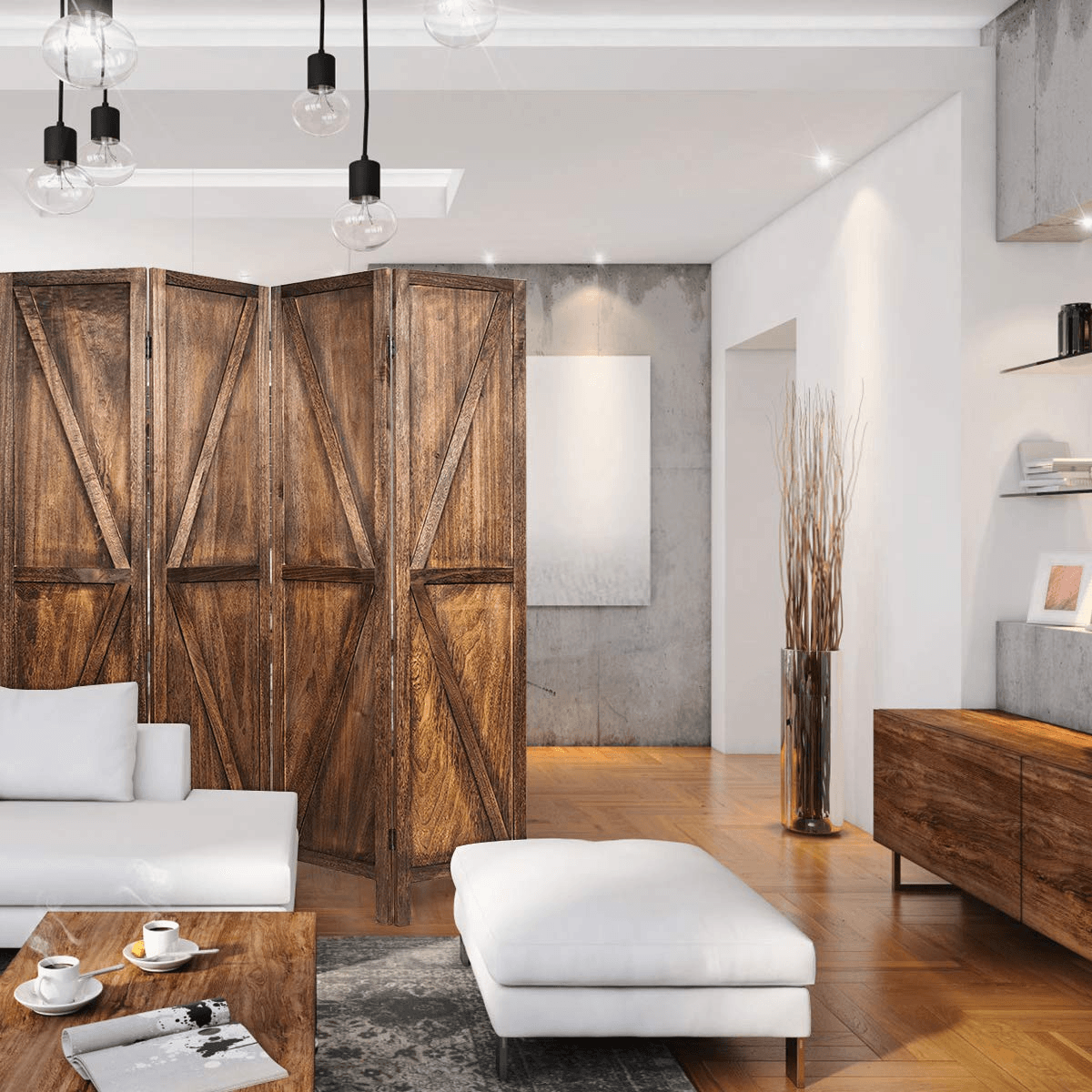 Do you long for having your own private space? Are you troubled by a messy indoor space? This 4-panel folding screen can be a perfect solution to the above problems! Our rustic room divider with V-shaped long edge ornament brings natural beauty and elegance to your room, keeping your home on trend. With 4 flexible panels, it can change the shape of your space or block the part of your room as needed. You can use this folding wall to separate sections of different rooms or just as a decoration. Thanks to the natural and solid wood material, it's light weight for easy storing and moving and is durable enough for long-lasting use. This is definitely a must-have item for your home!