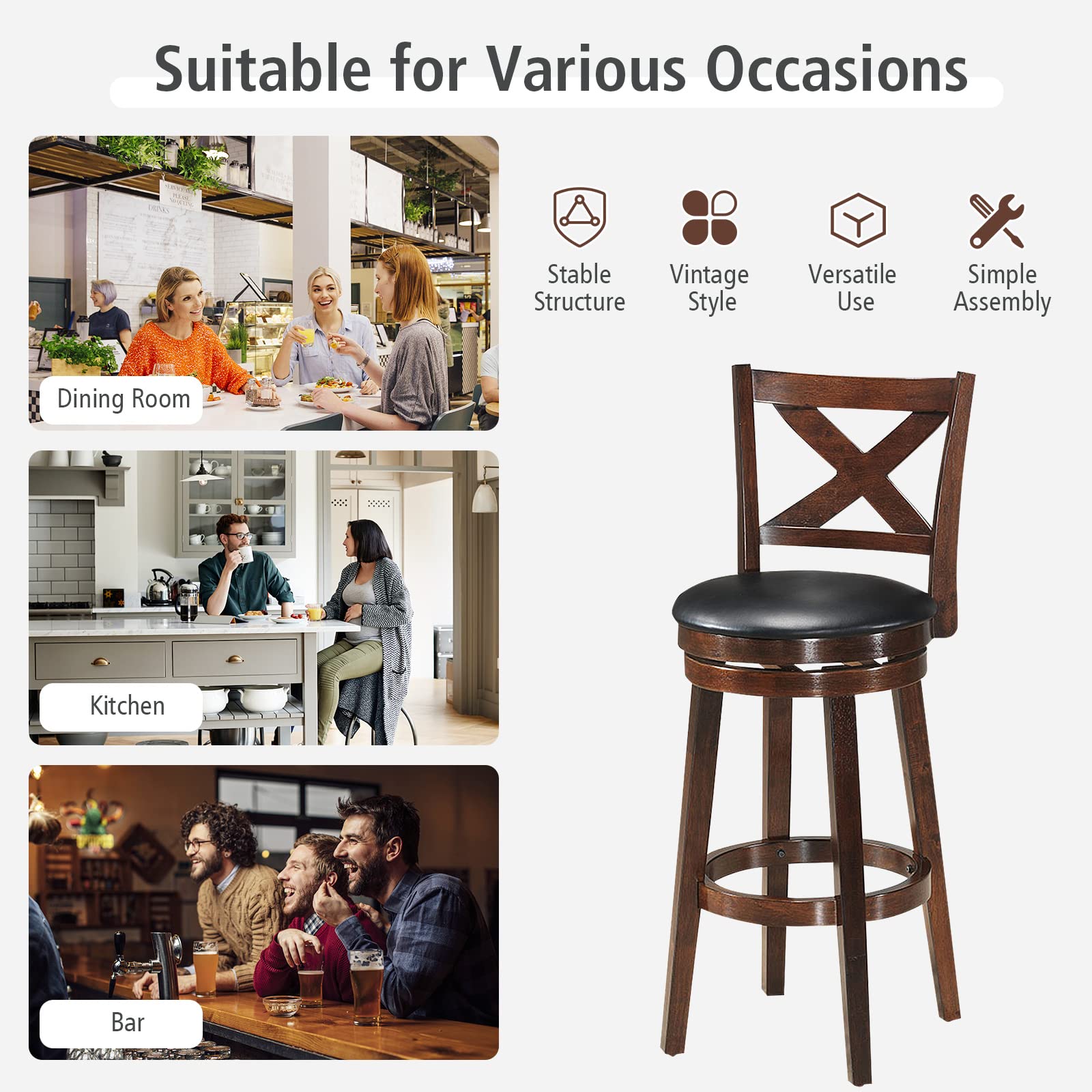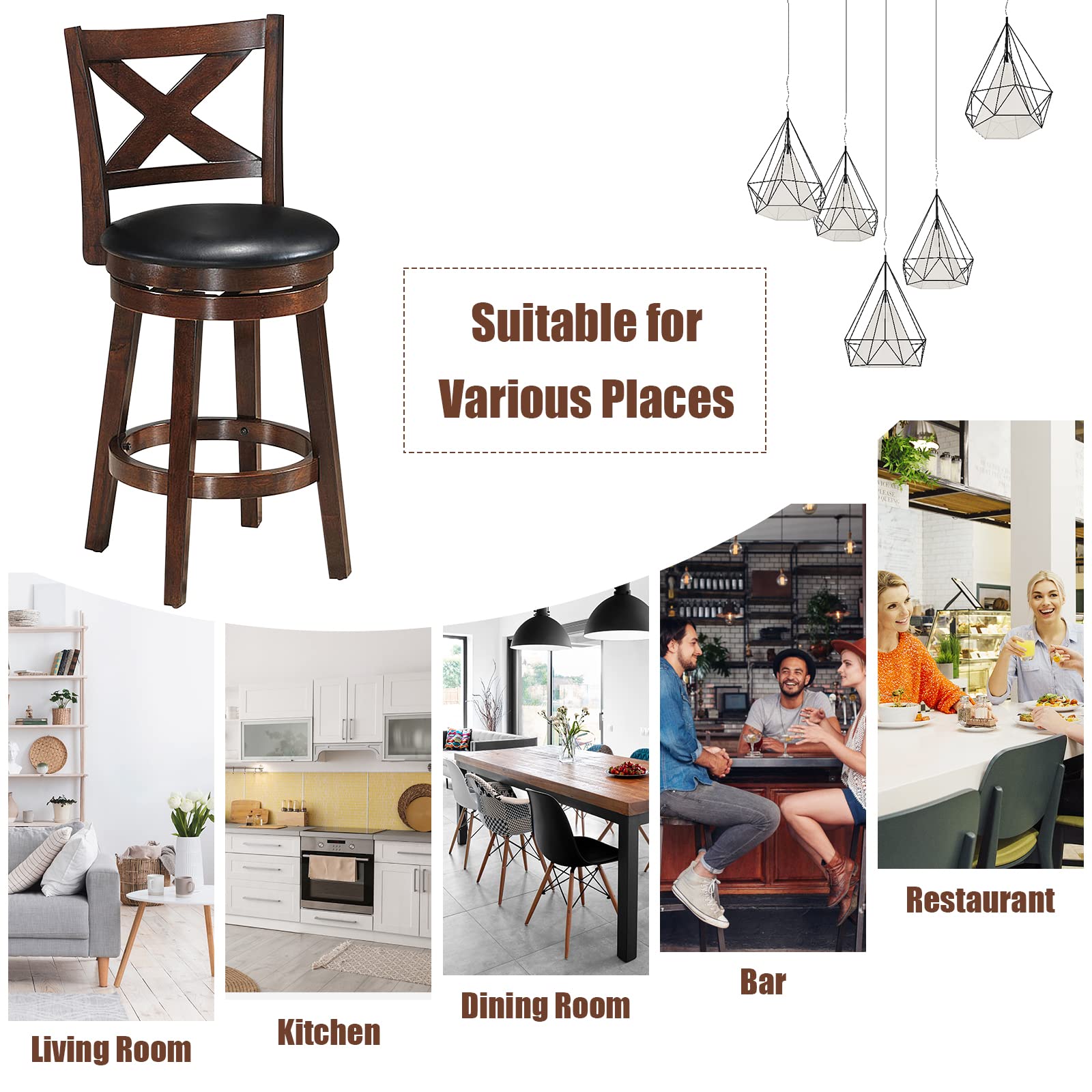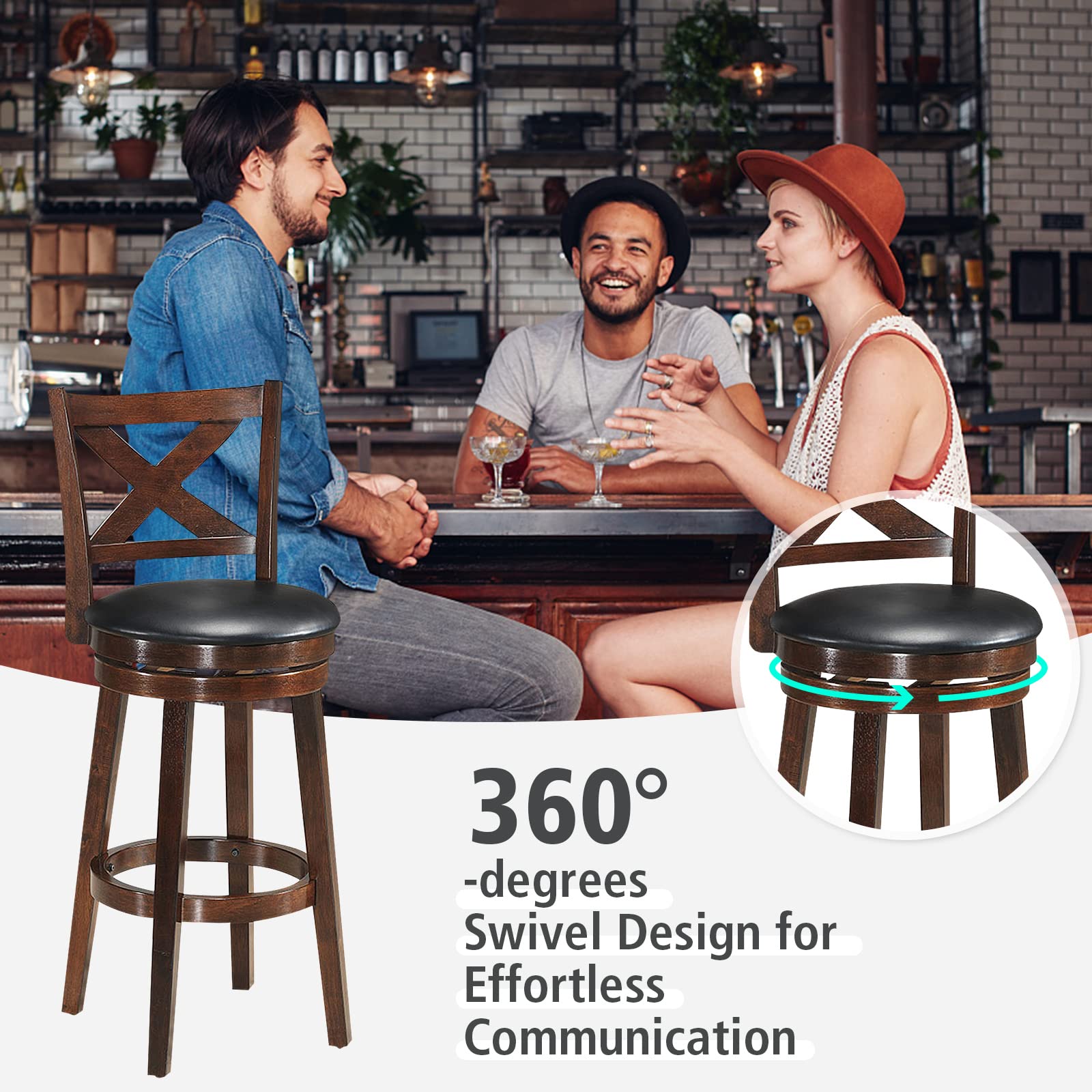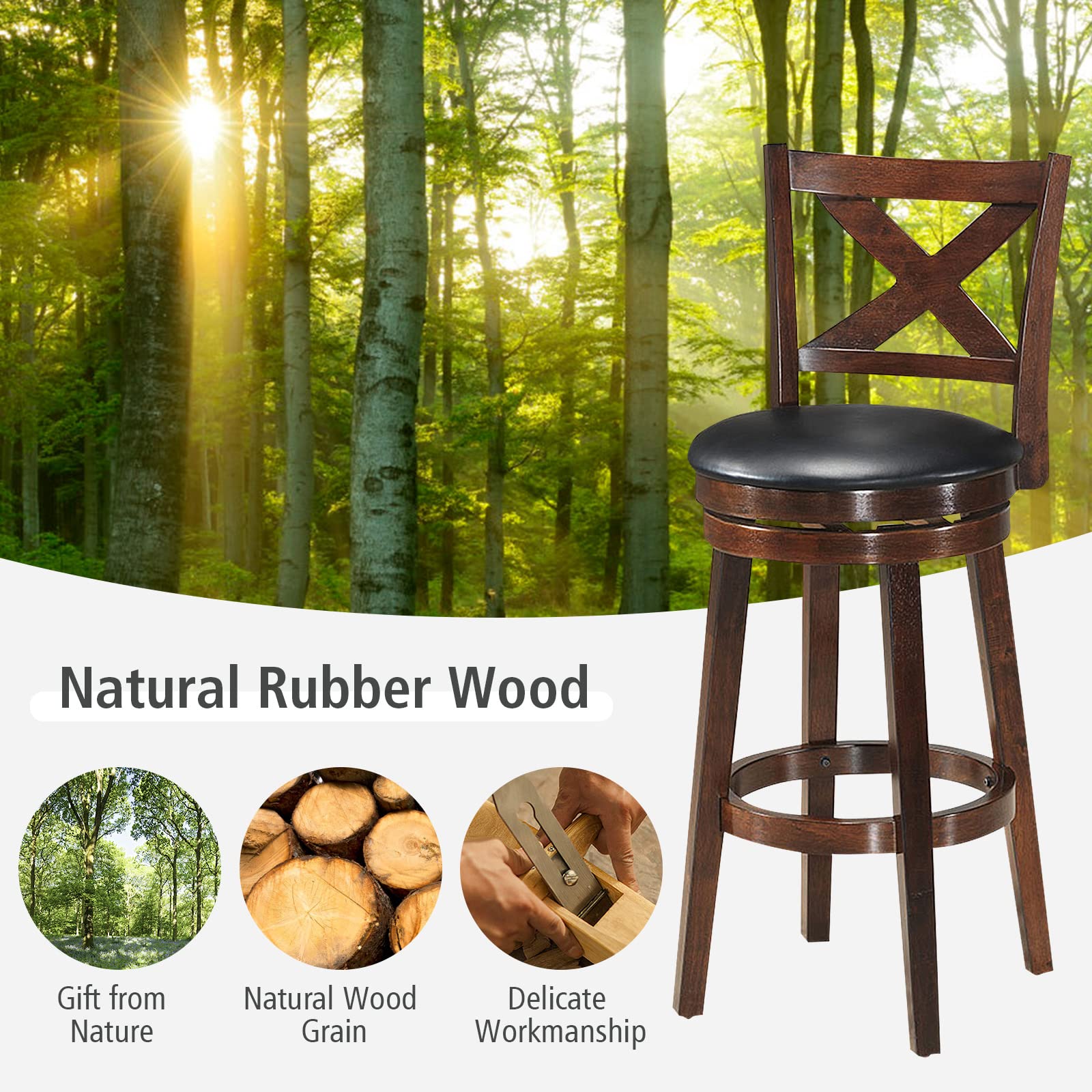 Product form Counter Height Dining Chair, Fabric Upholstered 360 Degree Swivel, PVC Cushioned Seat, Perfect for Dining and Living Room $158.99 24 inch / Set of 1 24 inch / Set of 2 29 inch / Set of 1 29 inch / Set of 2 Size Size chart 24 inch 29 inch Style Set of 1 Set of 2 Quantity Add to cart This item is a recurring or deferred purchase. By continuing, I agree to the cancellation policy and authorize you to charge my payment method at the prices, frequency and dates listed on this page until my order is fulfilled or I cancel, if permitted. Your order will be shipped for free!