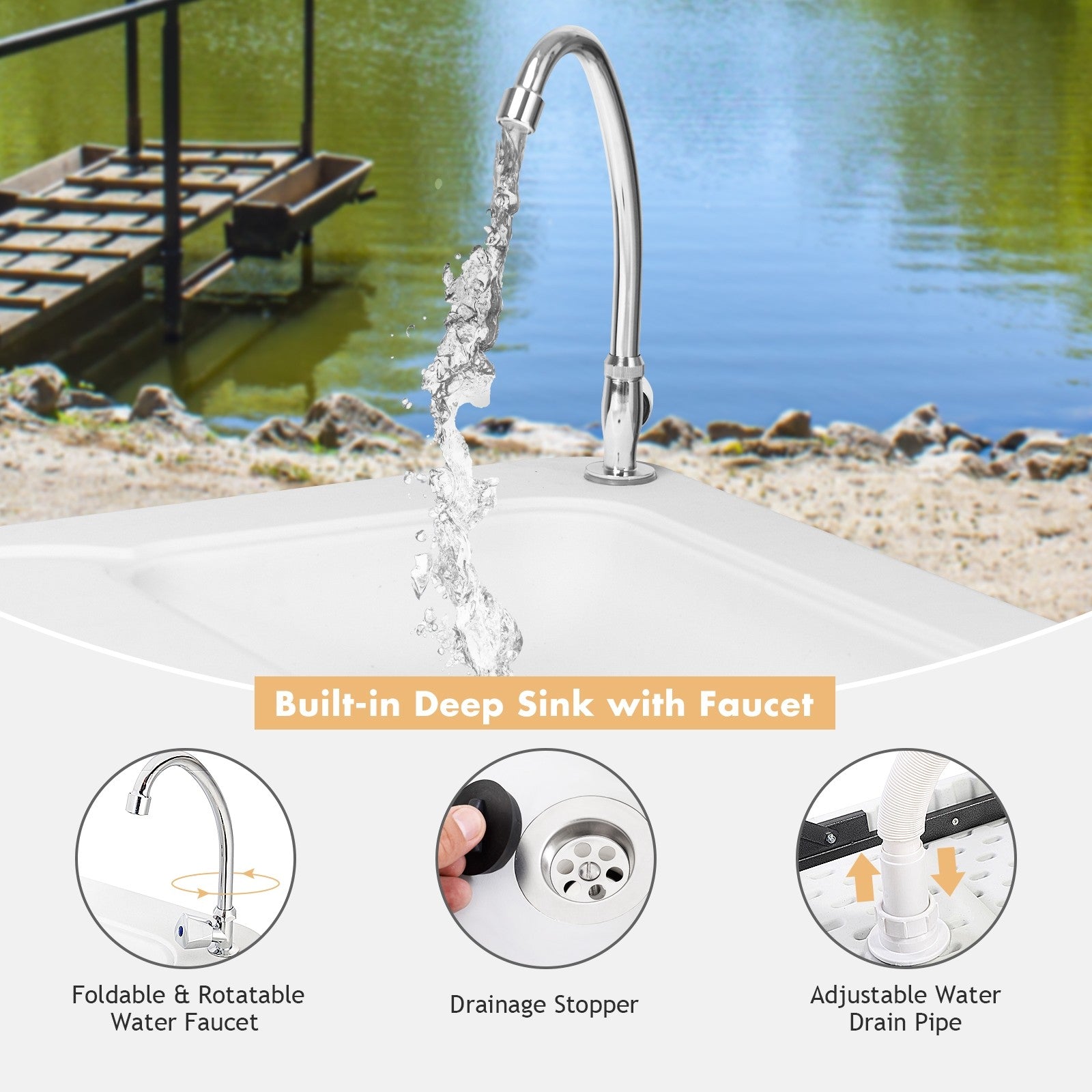 This is our folding fishing table which makes cleaning fish and wild game easy. Italso could be used clean different meats, fruits and vegetables. It can fold easily and lightweight and you could take to camping, picnics and almost anykind of outdoor activity. Don't hesitate to buy it!