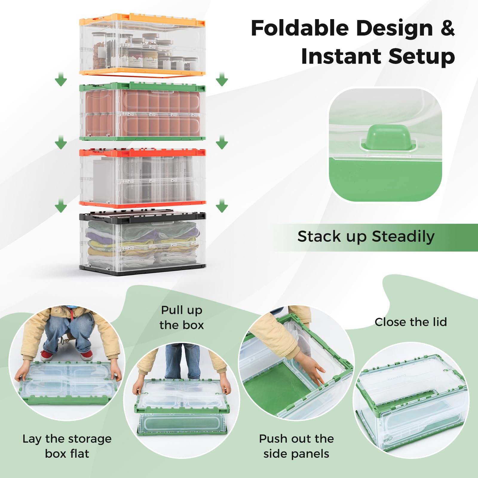 - 【Tool-Free Assembly】: Enjoy hassle-free setup with these collapsible storage bins ?C no tools needed! Just lay the storage box flat, pull it up, extend the side panels, and close the lid for effortless assembly.