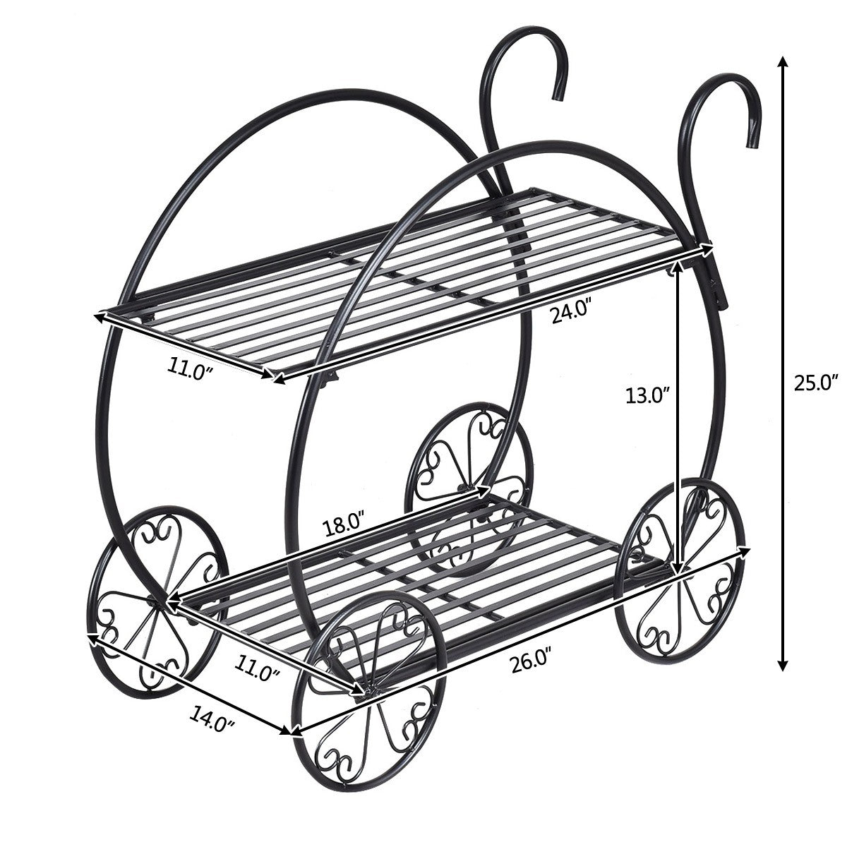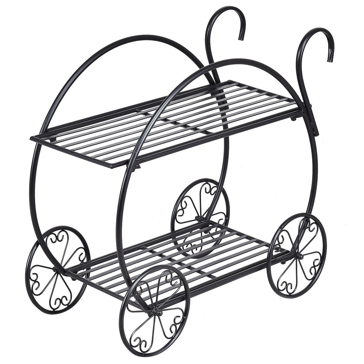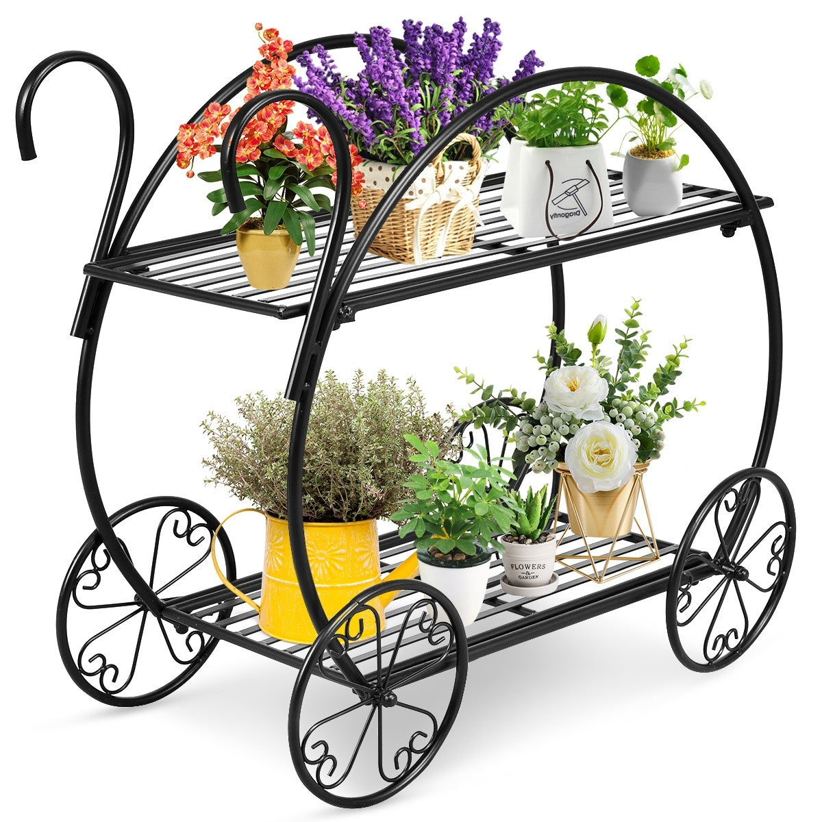 It is our Giantex attractiveand nice-looking two-tiered flower pot stand which will enhance level andimprove style of your room or yard. There are two tiers for displaying andclassifying flowers, plants, and assorted greenery beautifully on this gardencart. In addition to displaying plant pot, you can also put your garden tools,books or other things on it, which also provides much more additional space foryou. The whole classic design makes it a great decorative artwork in your home,deck or patio! It will be worthy of your choice!