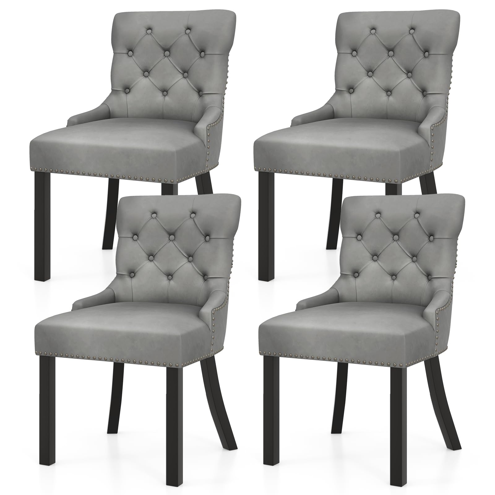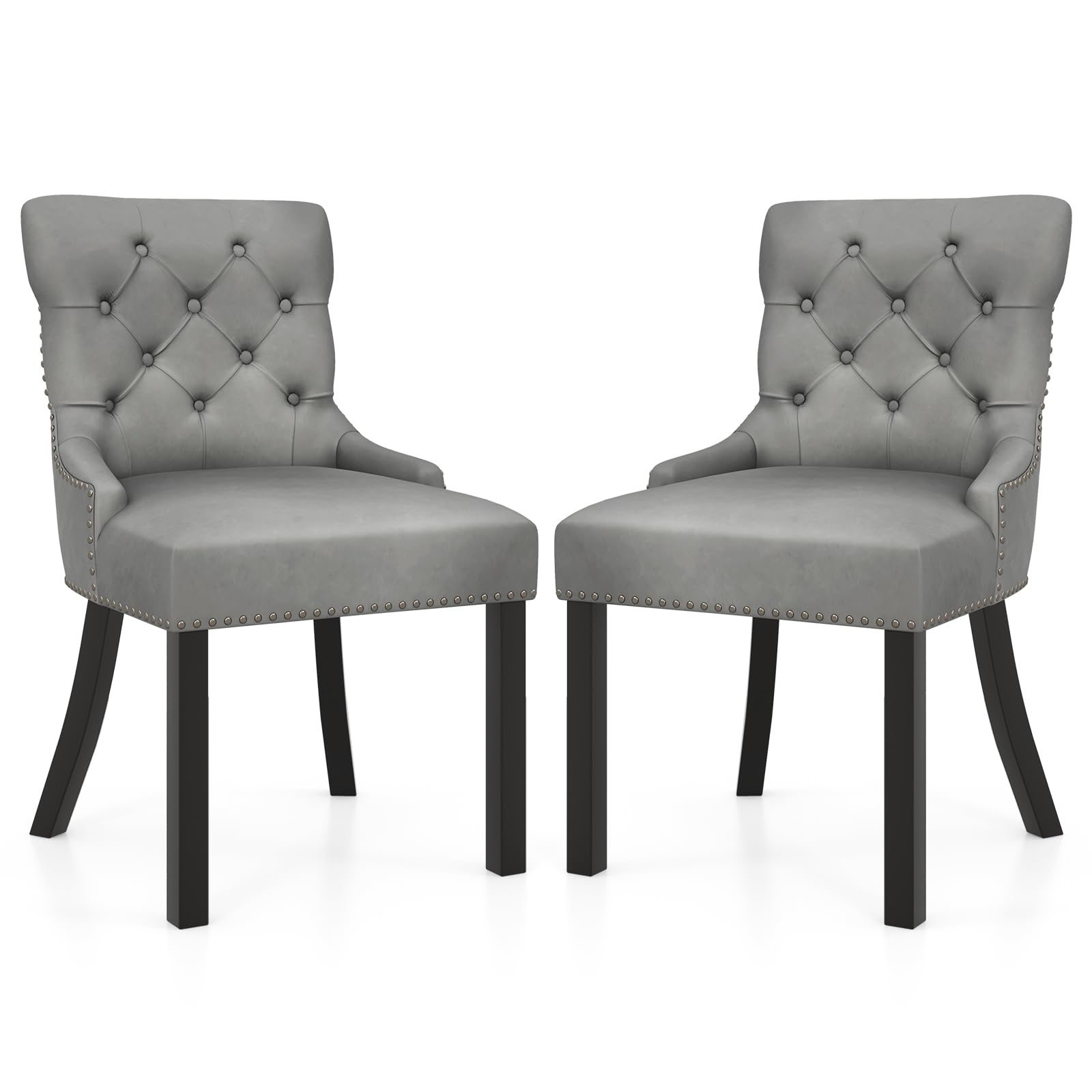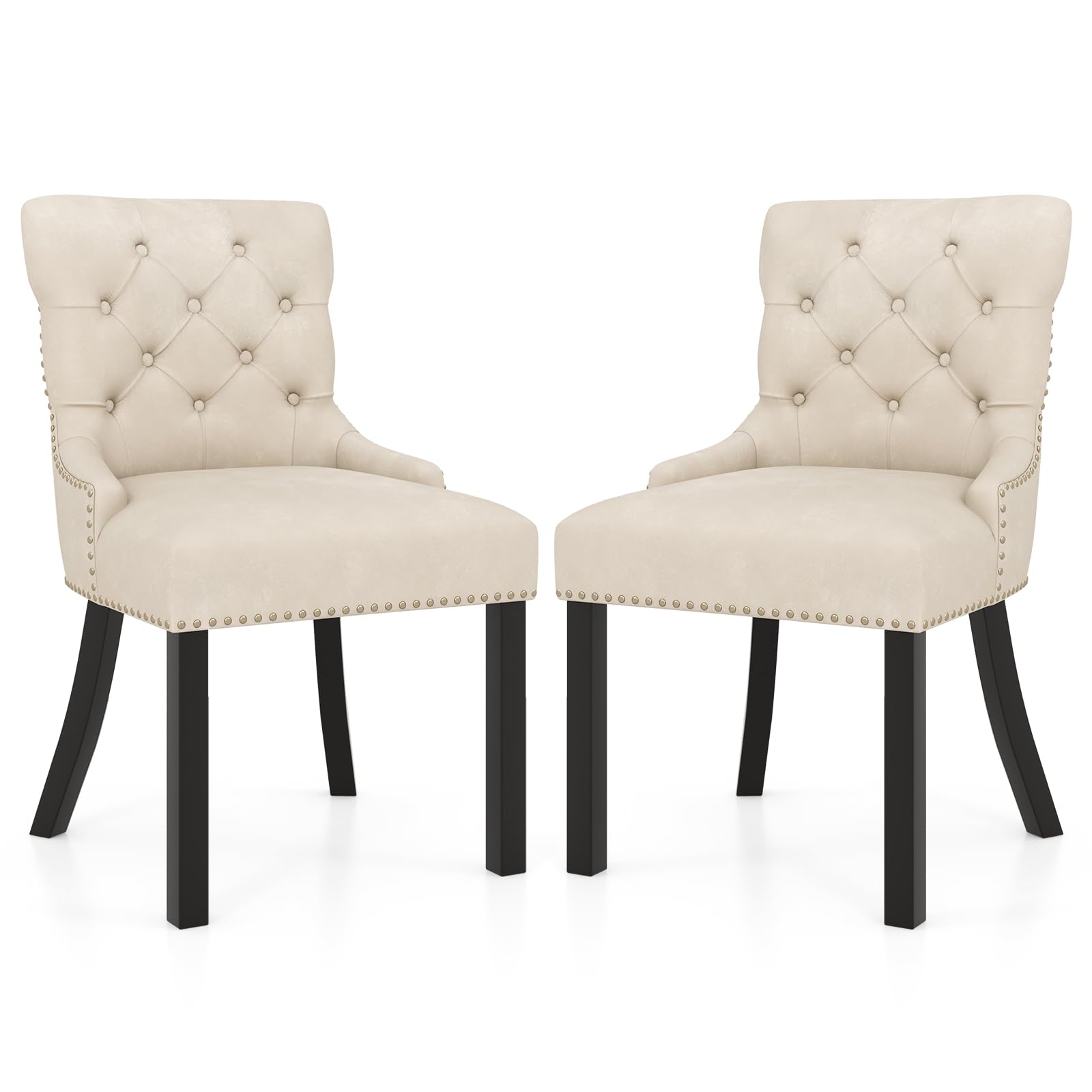 Gianex Upholstered Dining Chairs Set, Wood Wingback Accent Chairs w/Rubber Wood Legs & Nailhead Button Tufted Back