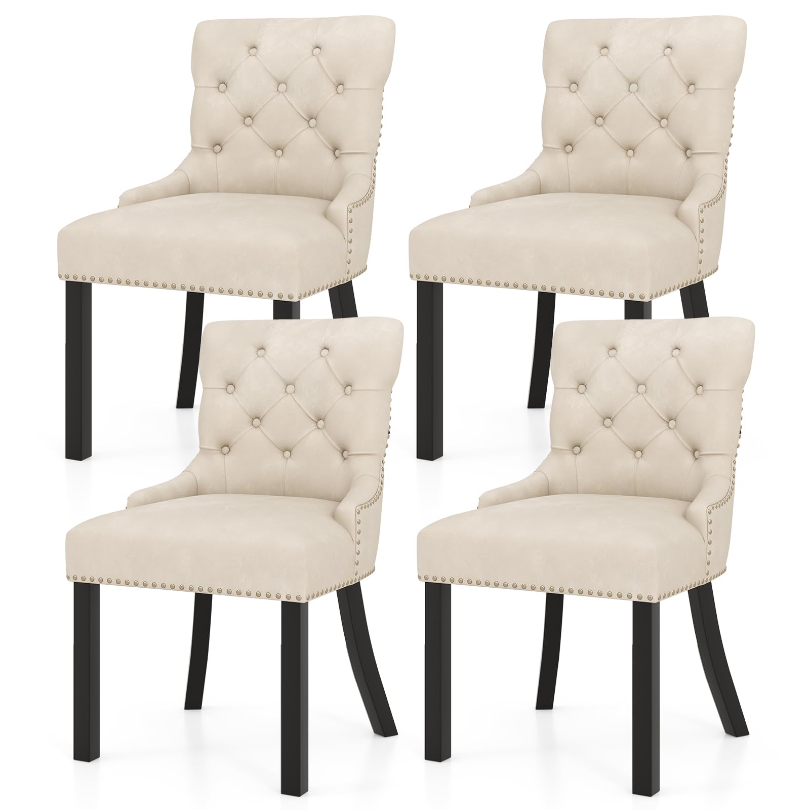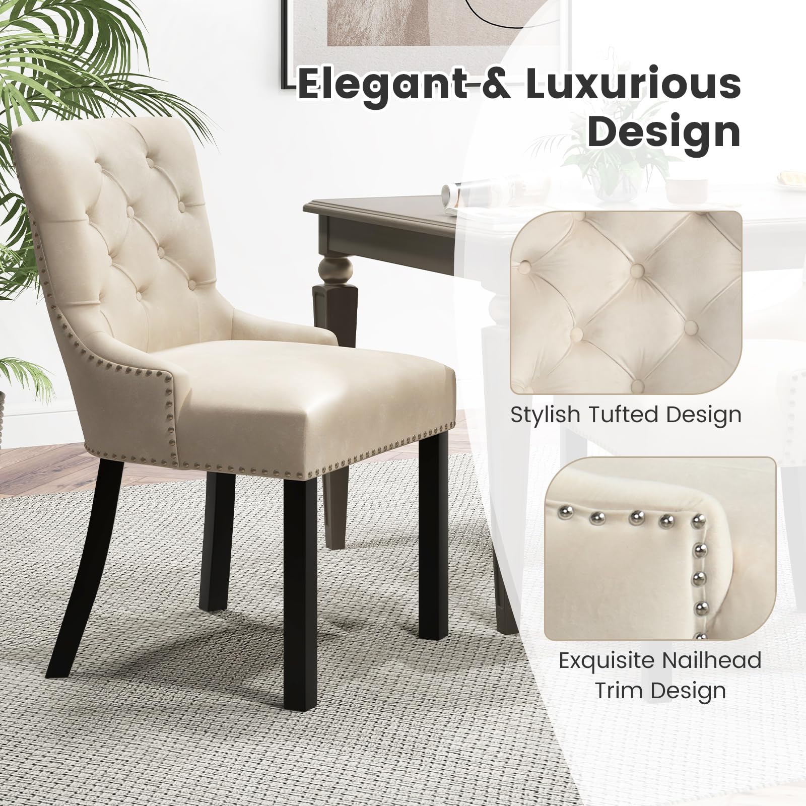 • Stable Wooden Construction: The tufted dining chairs feature rubber wood legs, which are renowned for their sturdiness, ensuring an impressive weight capacity of 350 lbs. Also, the legs come with non-slip foot pads to enhance the overall stability and protect the floor from scratches.