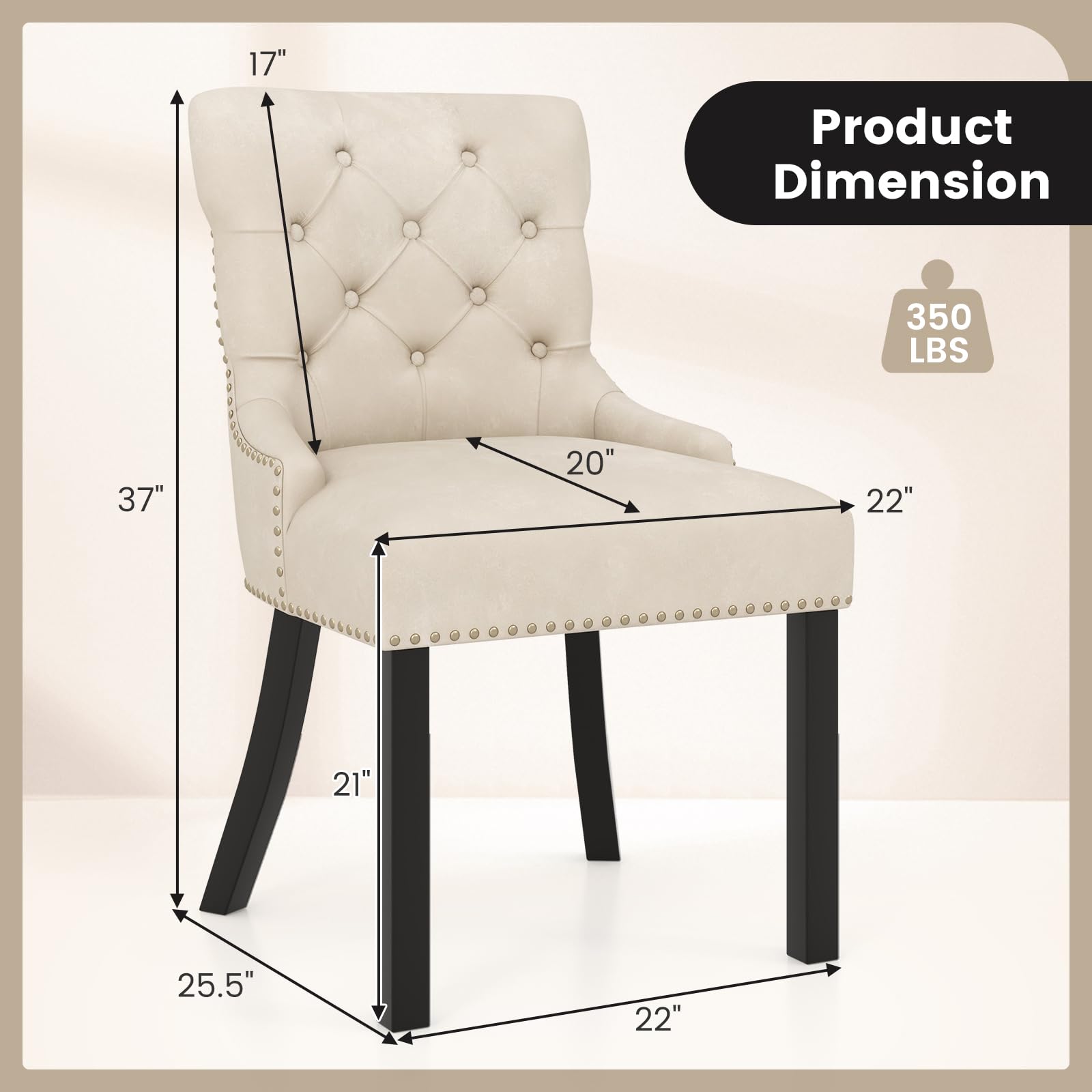 • Easy to Assemble & Clean: Designed for daily use, the selected fabric allows you to maintain their allure with ease. With detailed instruction, the tufted accent dinner chairs can be installed with ease. The overall dimension of the fabric chair is 25.5" x 22" x 37" (L x W x H).