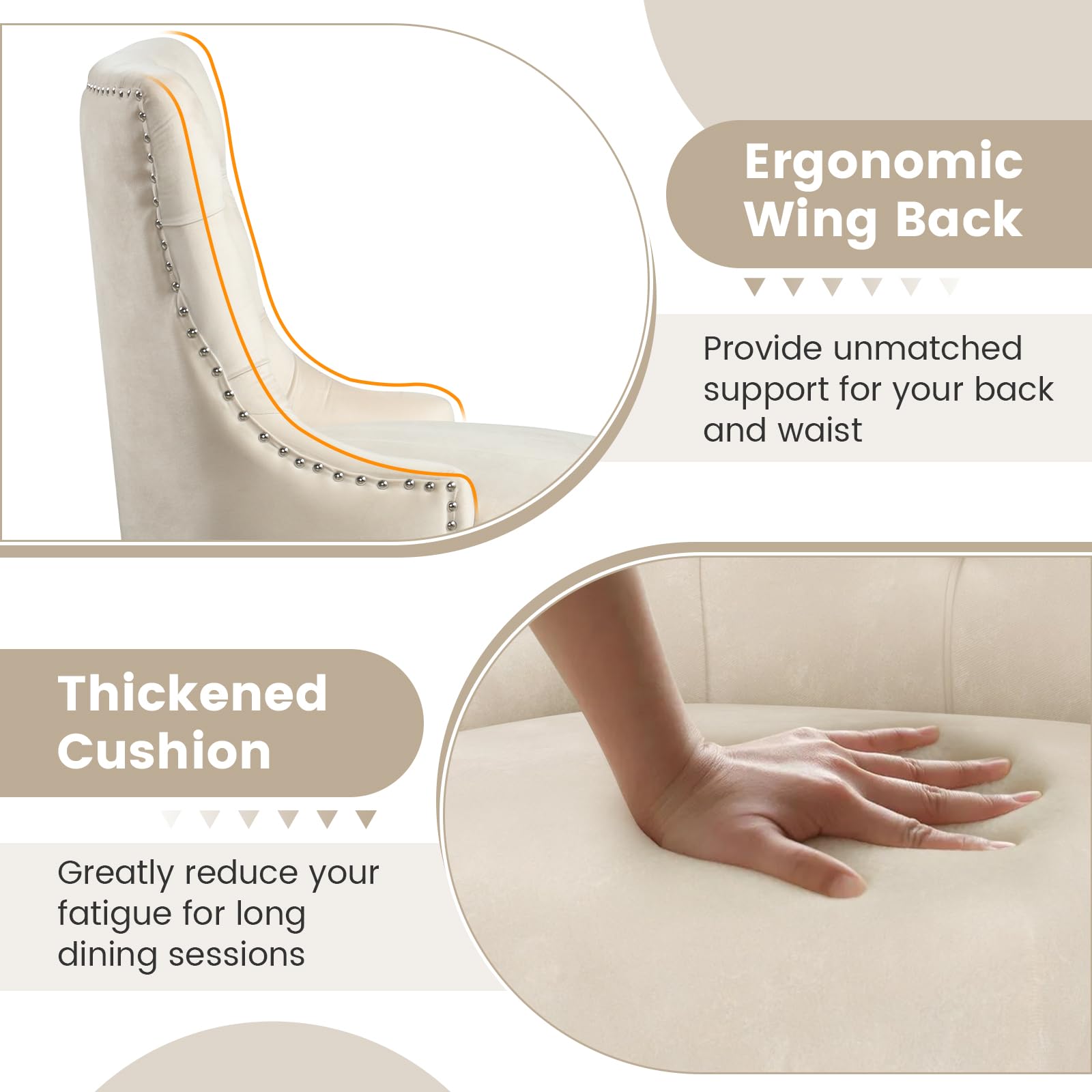 • Ergonomic Winged High Back: The wing-shaped high back of the farmhouse dining chair not only enhances the aesthetics of the room, but also provides a great support for the back. In addition, the curve of the high back fits your body well to promote a healthier sitting posture.
