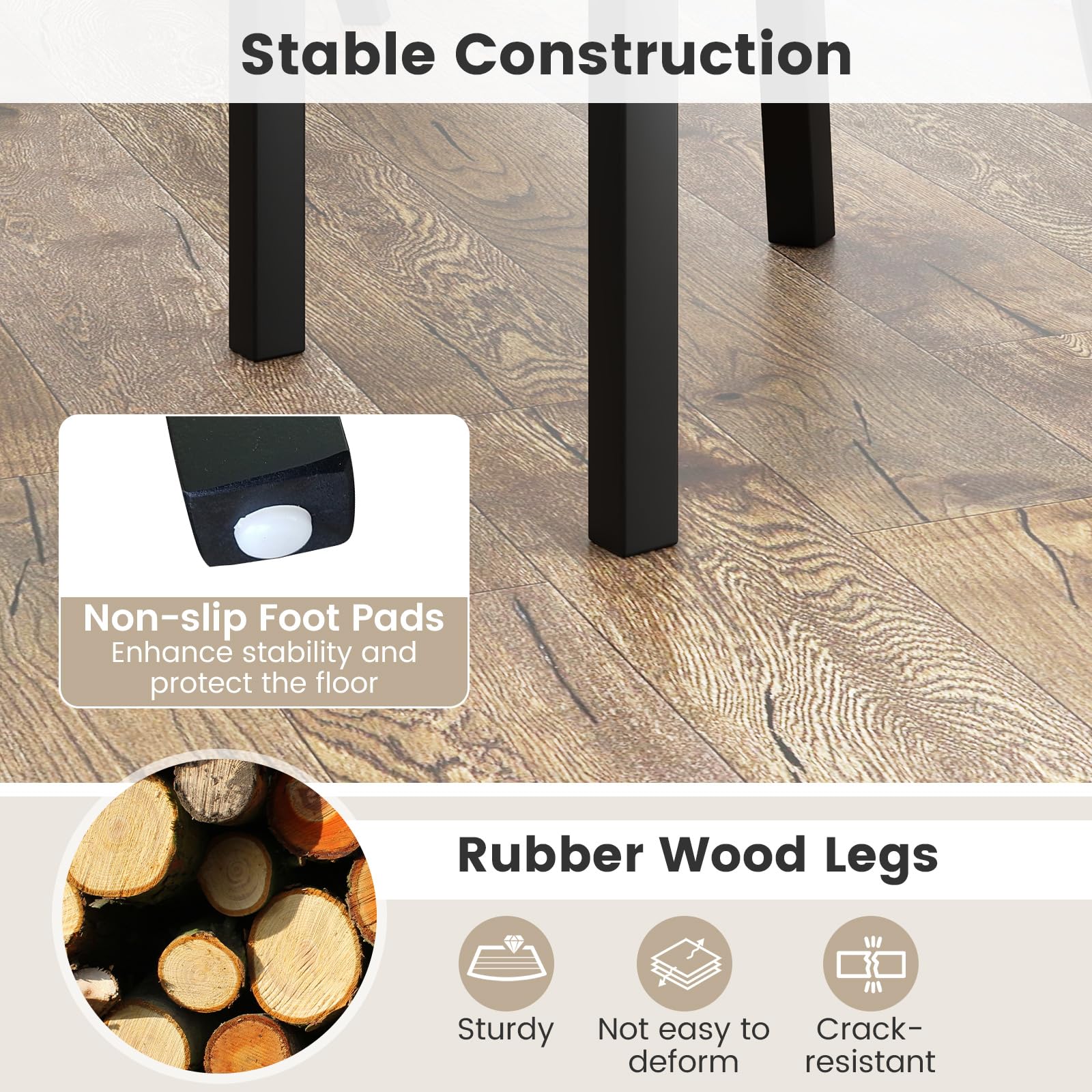 Sturdy rubber wood legs are crack-resistant and not easy to deform