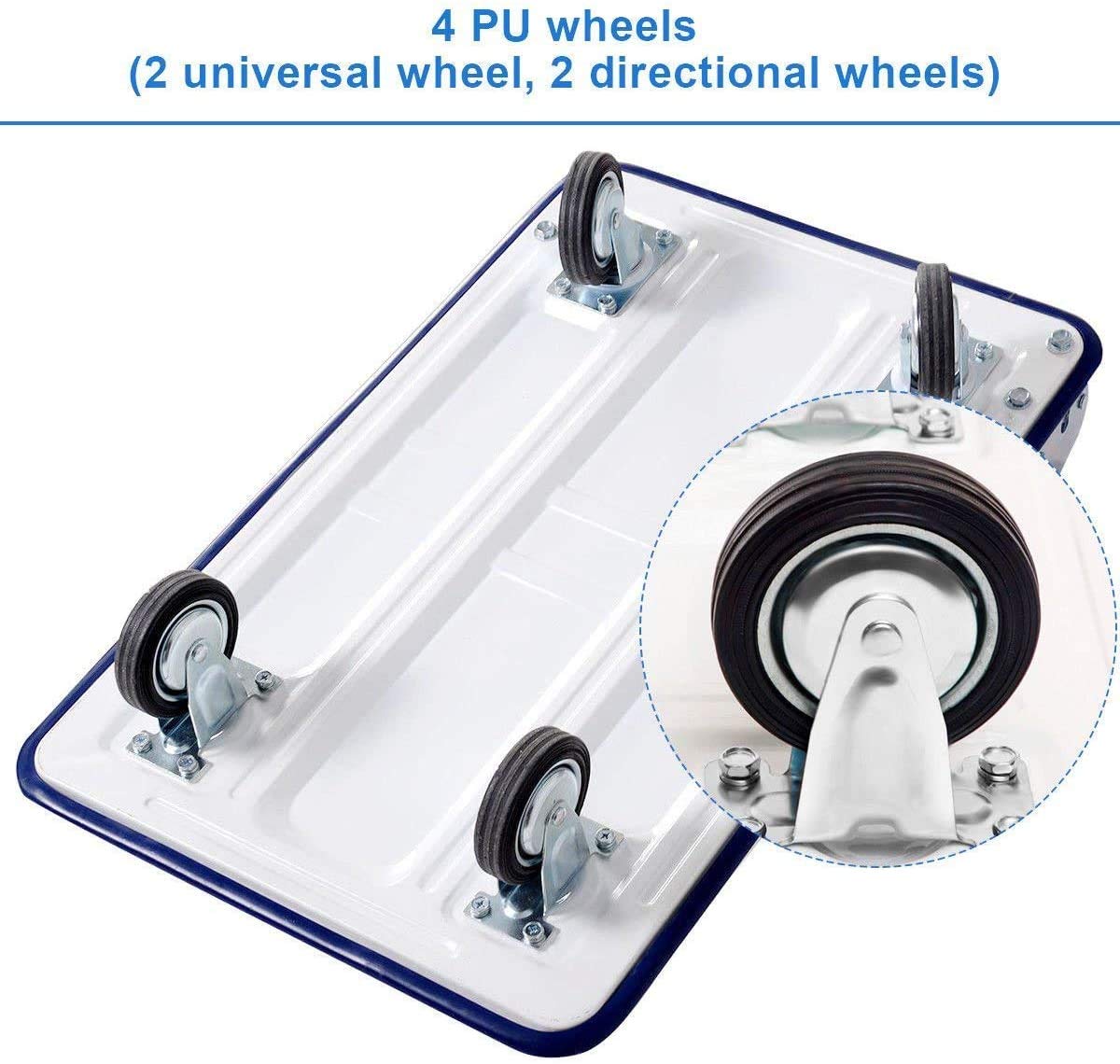 - Spacious Loading Platform: The flat cart is super handy for moving objects that are too big or too heavy to carry by one person. It comes with a large flatbed, with which you can stack quite a bit of packages all on this cart at one time instead of walking back and forth several times, saving a lot of time and effort.