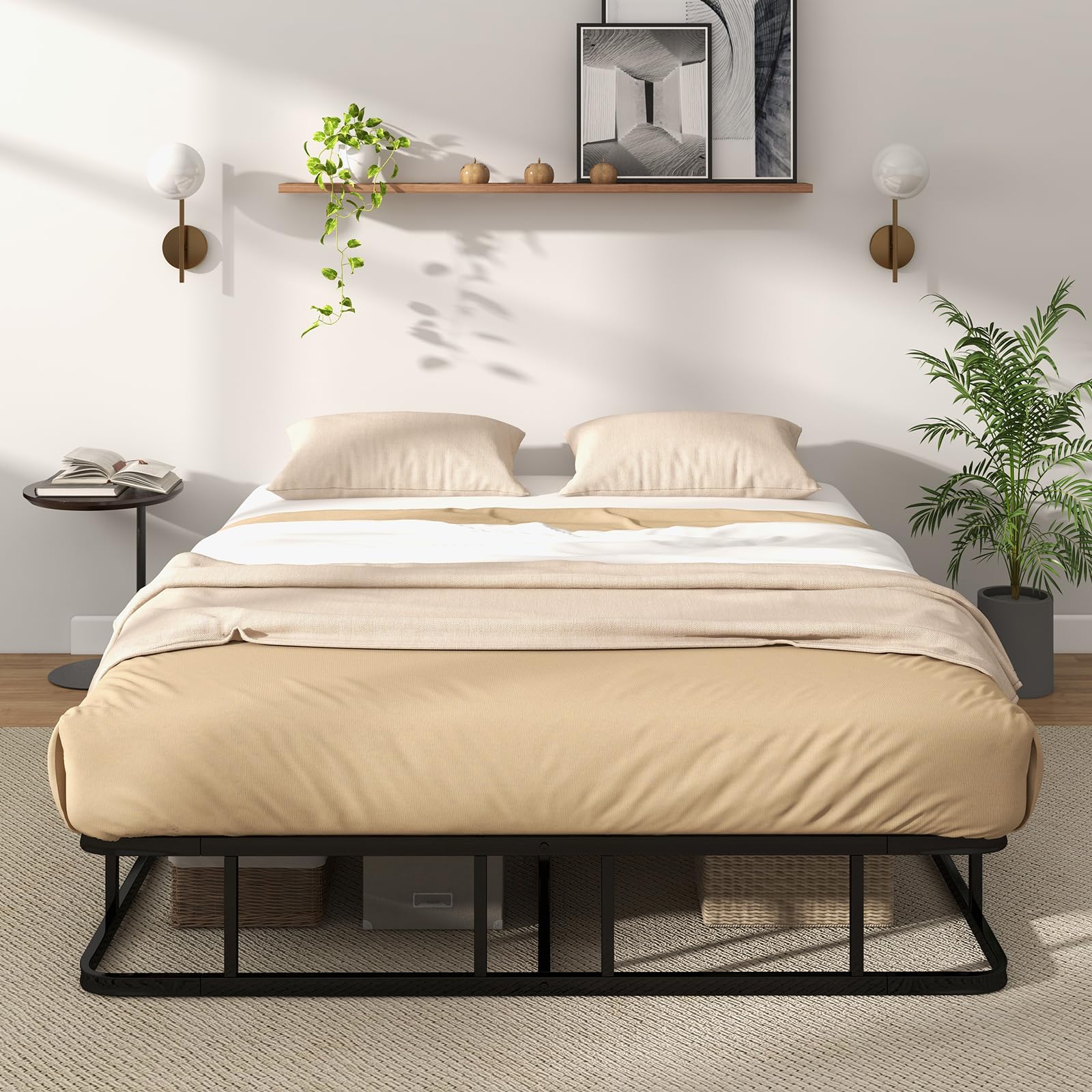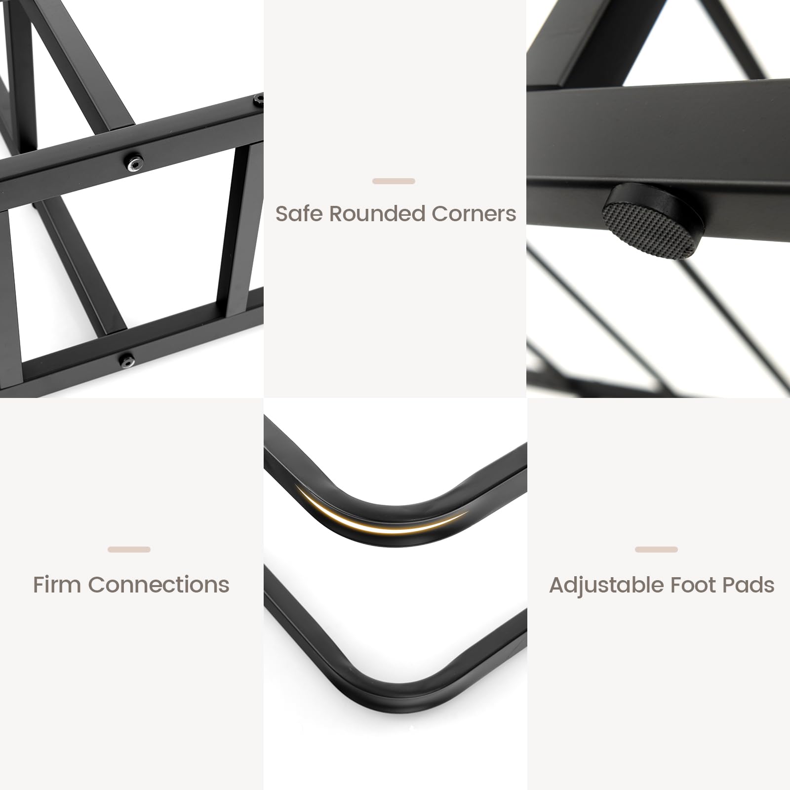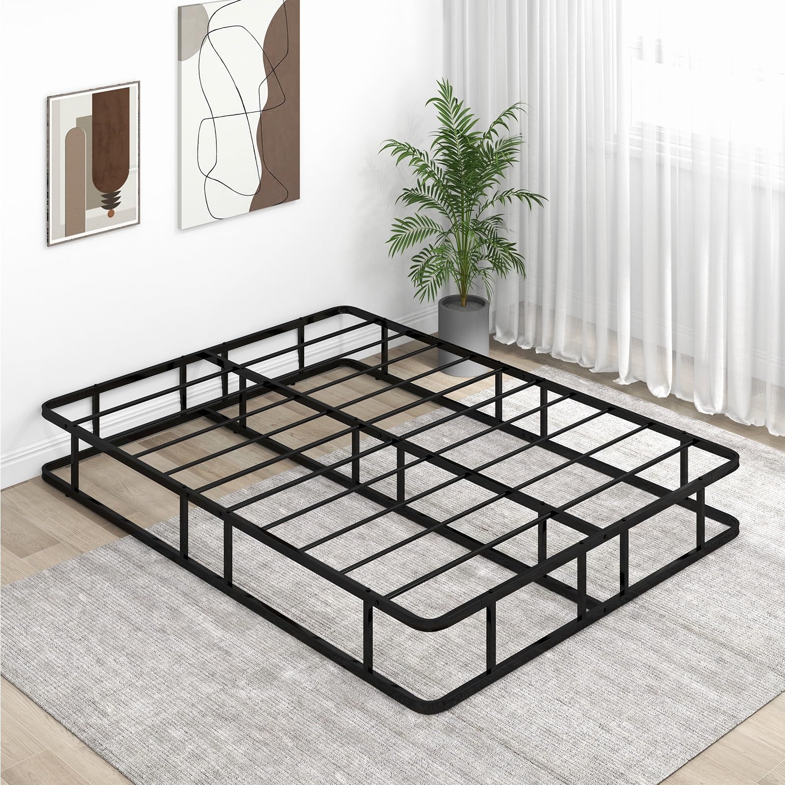 Transform your bedroom into the ultimate sleep sanctuary with our Queen Size Platform Bed Frame! Crafted from solid metal and coated with a rustproof powder finish for extended durability, this bed frame sets the stage for a restful night's sleep. Boasting 10 robust metal slats and 16 support bars, it delivers enhanced stability and a superior load-bearing capacity compared to alternatives. Bid farewell to bulky box springs! Safety is paramount-featuring non-slip foot pads and rounded corners to shield you from unwanted bruises. This versatile marvel seamlessly complements any decor, serving as both a box spring and a standalone bed frame.