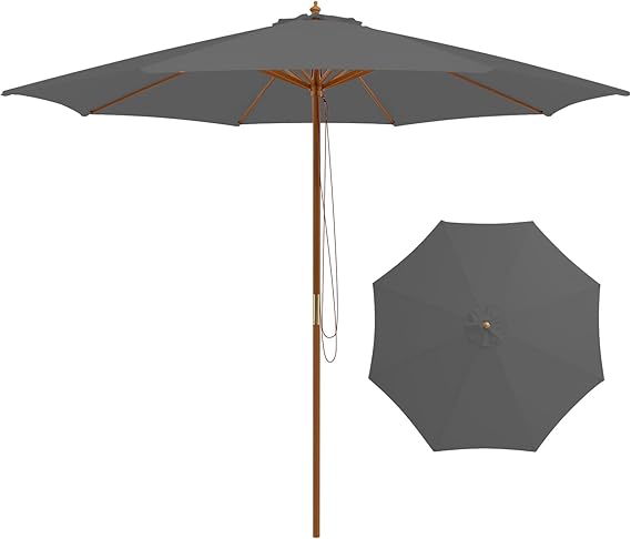 • Stabler than You Think: This patio umbrella features 8 solid bamboo ribs to enhance durability and stability. Besides, 1.5 inches thickened wooden pole allows this outdoor market umbrella to stand firmly. Note: the umbrella must be secured with a weighted base (sold separately).